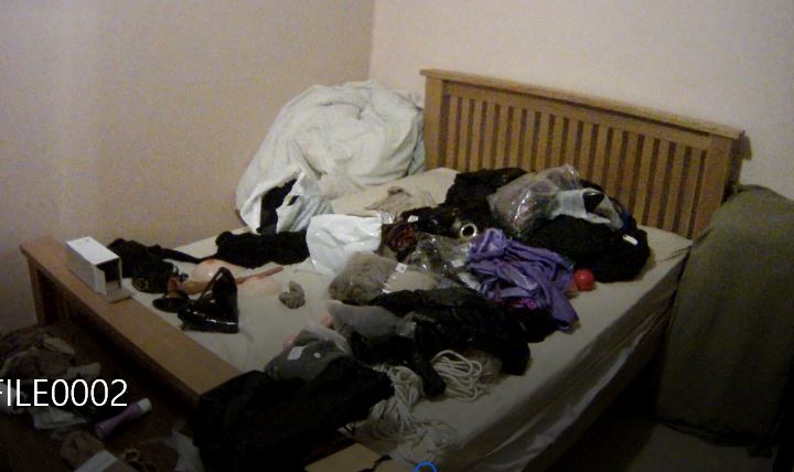 As you can see, I’d tipped virtually all my fetish kit out onto the bed and the first thing to do was sort out the bits to use and tidy away the rest.