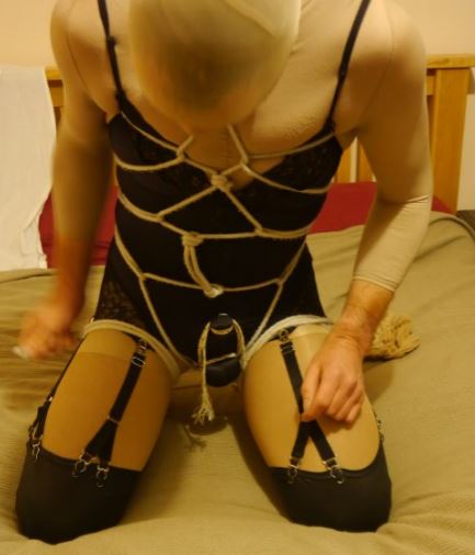 I thought you might like to see this image, captured half-way through untying myself - I just couldn’t resist a quick fondle with my wrists still bound… but nothing came of it!