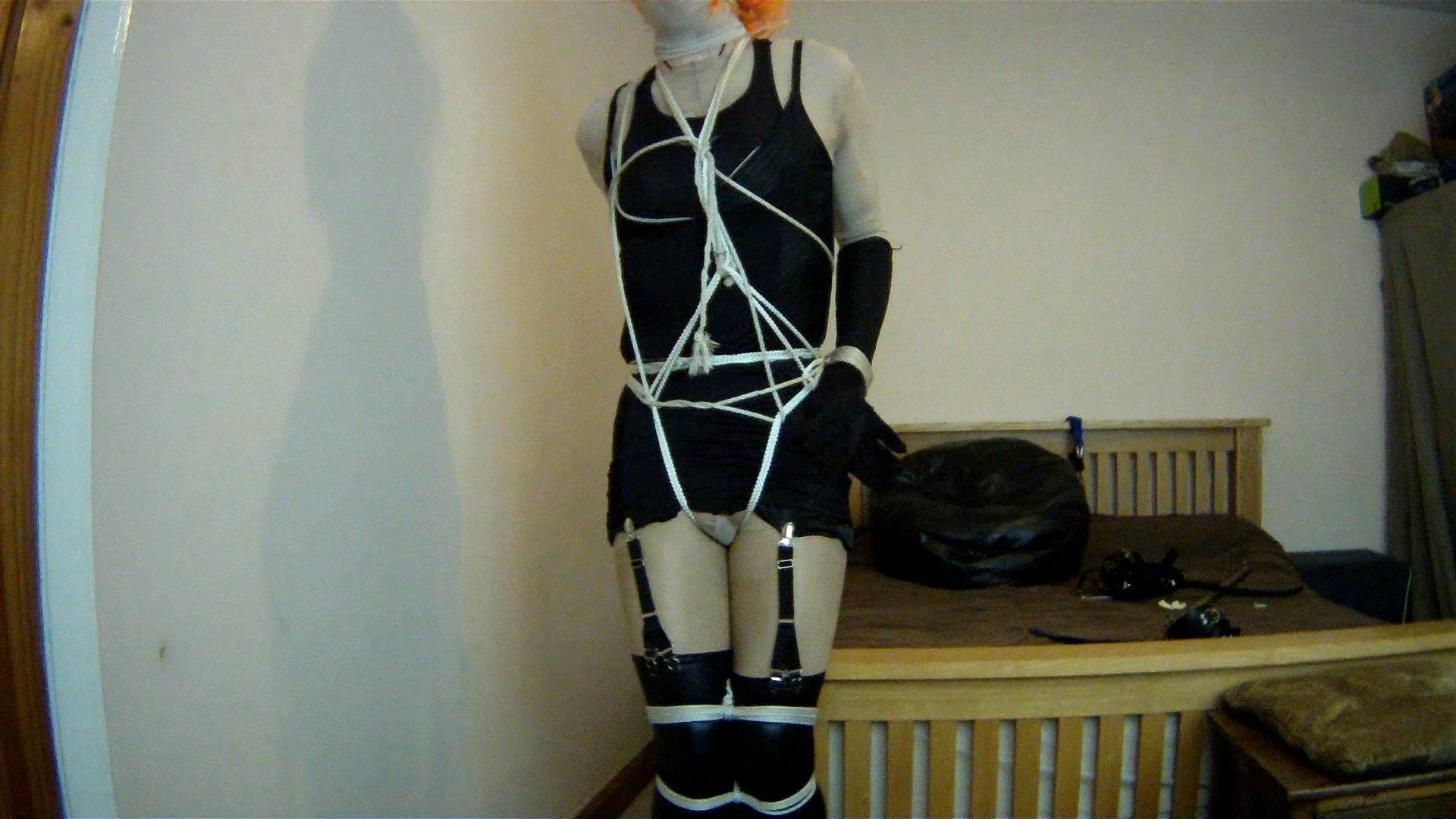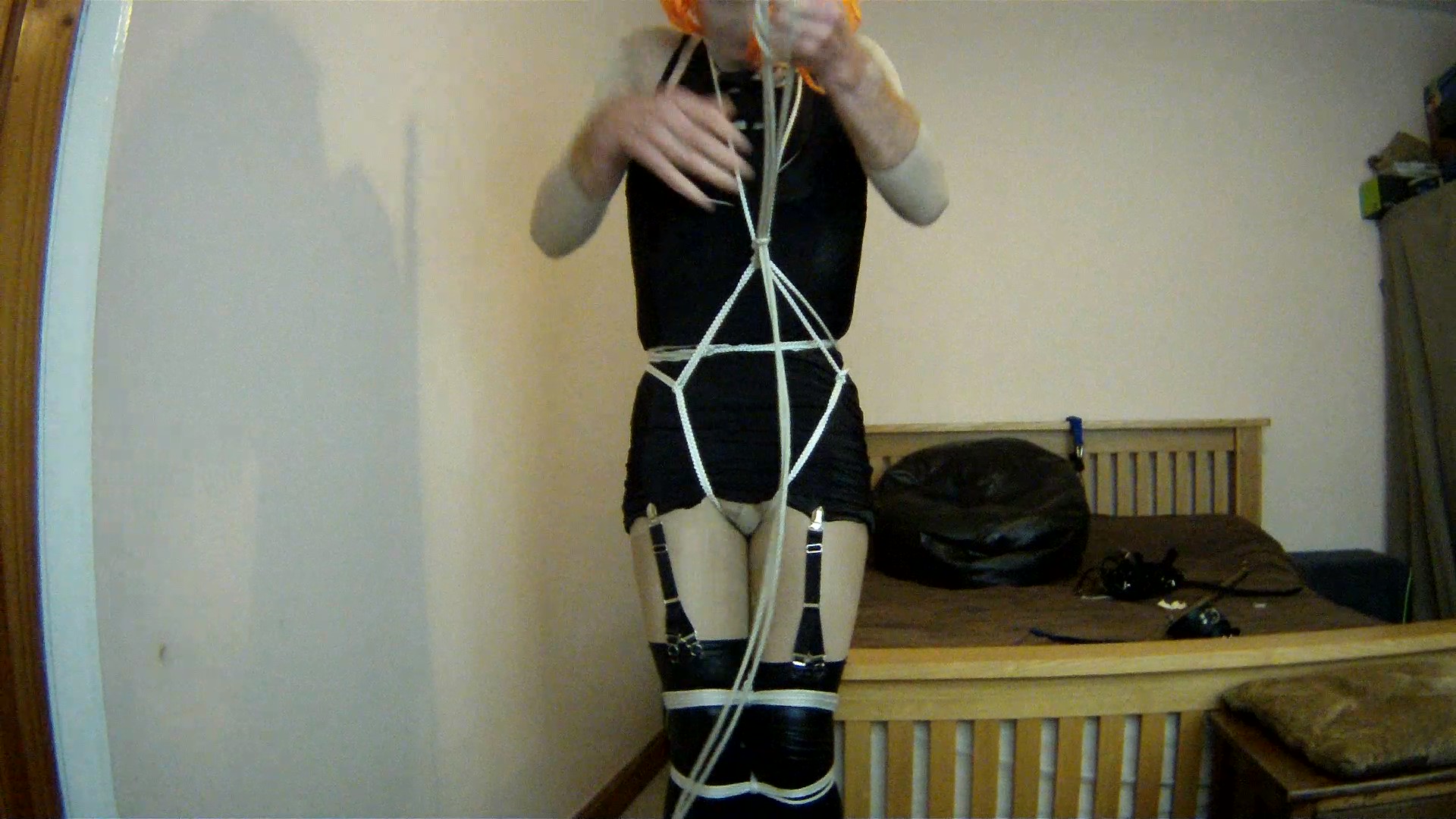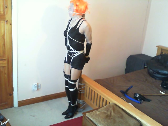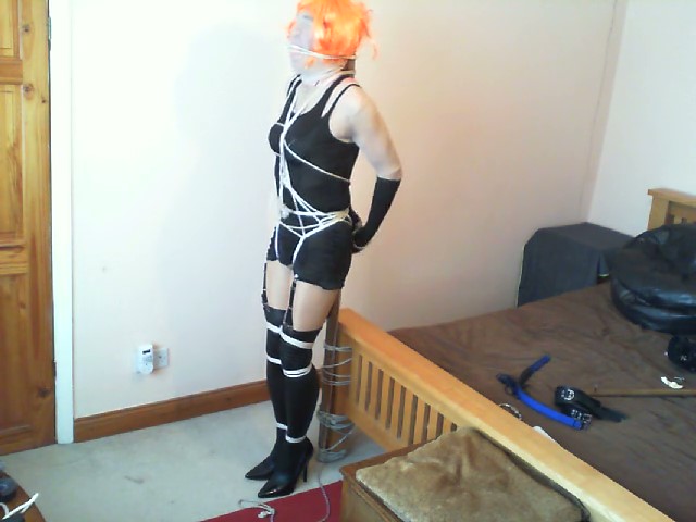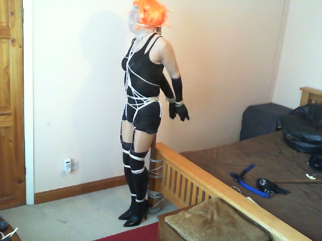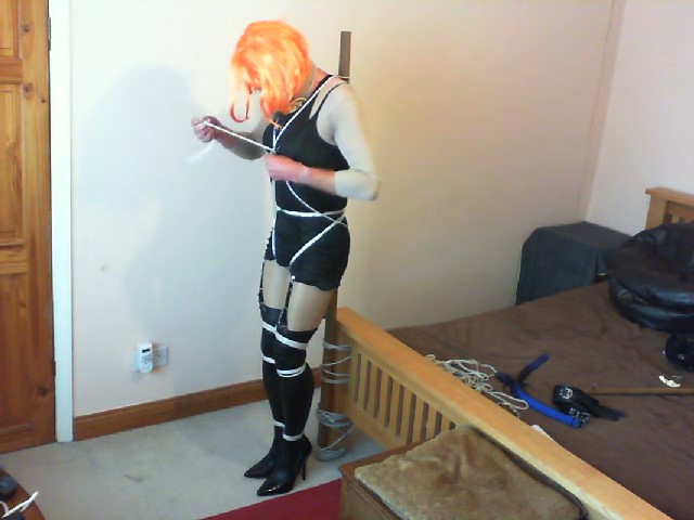 I love upright ‘pole ties’, there is something deep inside me that thrills at being bound tightly against an immovable object and having to stand still in my high-heels. Due to the limitations of my movement when under-taking my self-bondage, I’m never able to quite get the bondage as tight or as strict as I would like – but it was great fun trying!