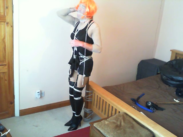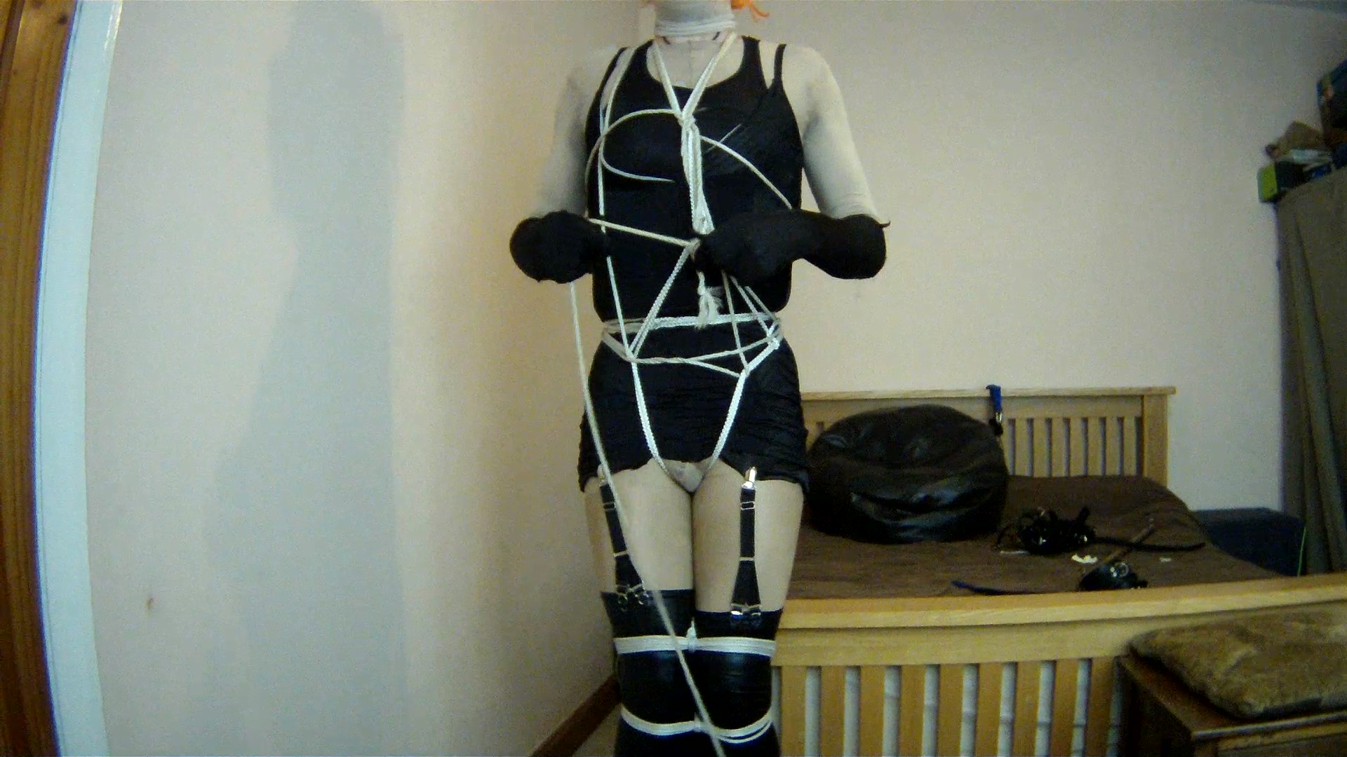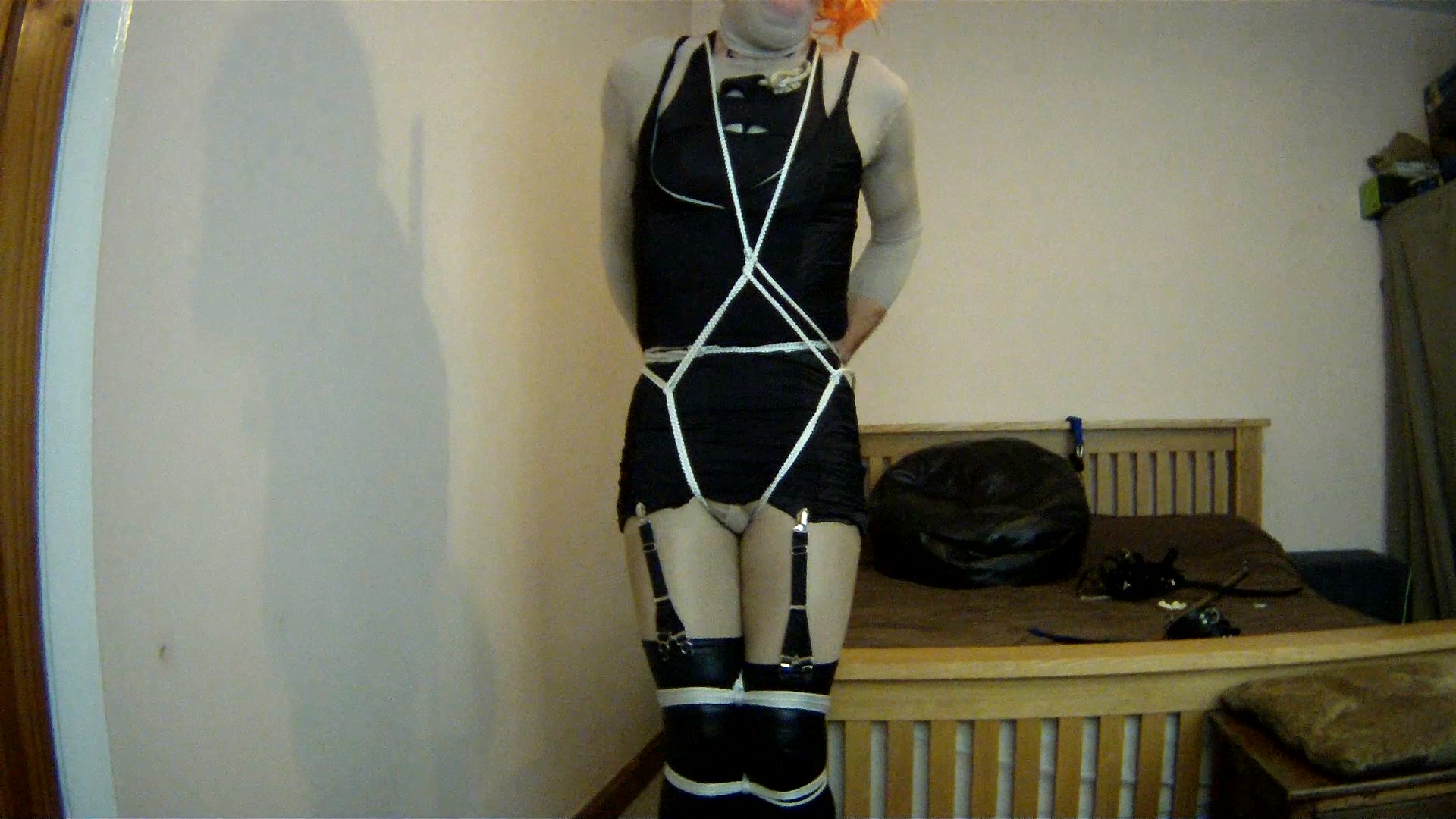 I love upright ‘pole ties’, there is something deep inside me that thrills at being bound tightly against an immovable object and having to stand still in my high-heels. Due to the limitations of my movement when under-taking my self-bondage, I’m never able to quite get the bondage as tight or as strict as I would like – but it was great fun trying!