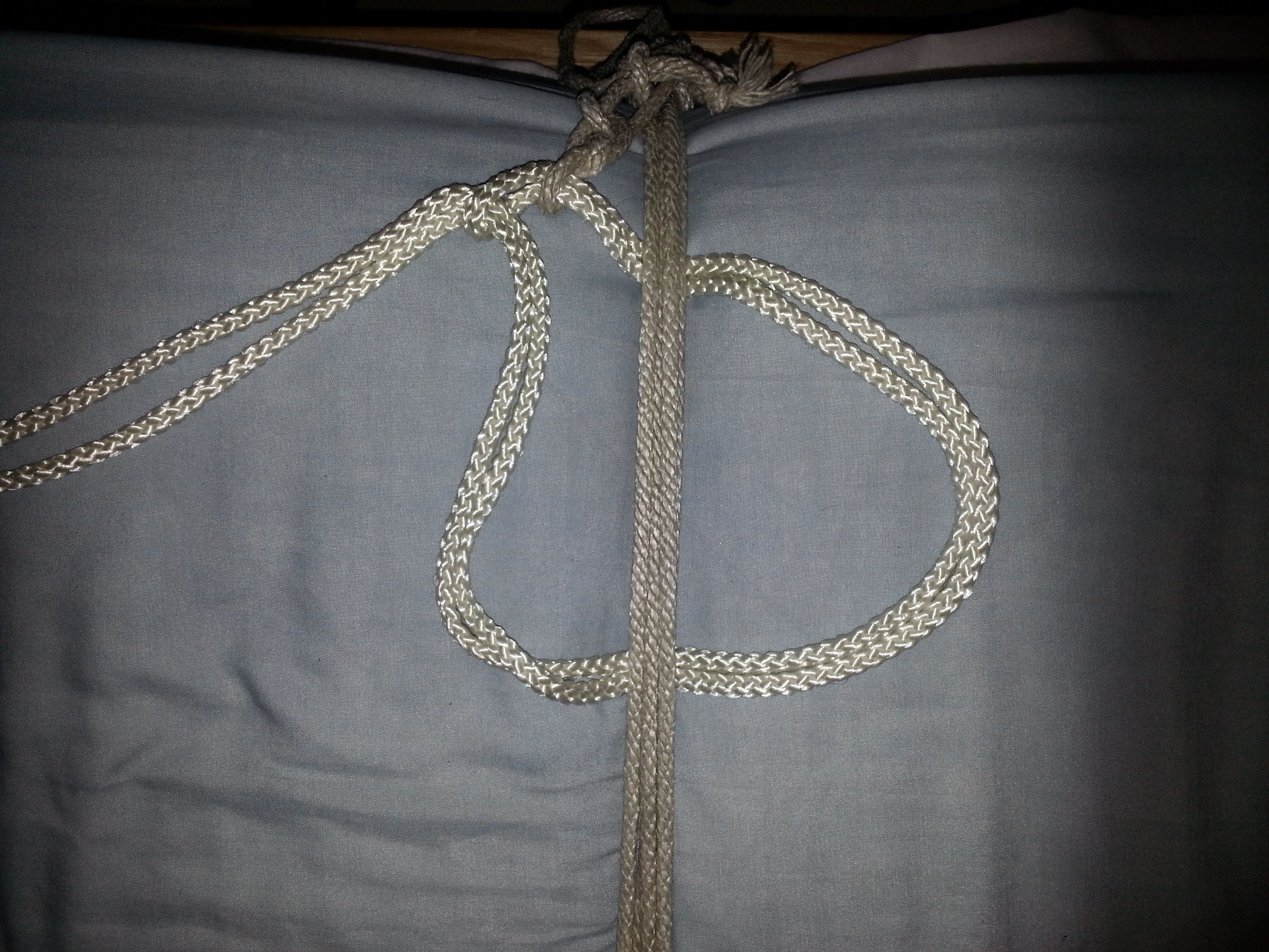 I arranged some pre-formed coils of rope, under the cross-bed rope, so that they formed a ‘slip-knot’ type set-up – hopefully the picture explains this more clearly than my words.