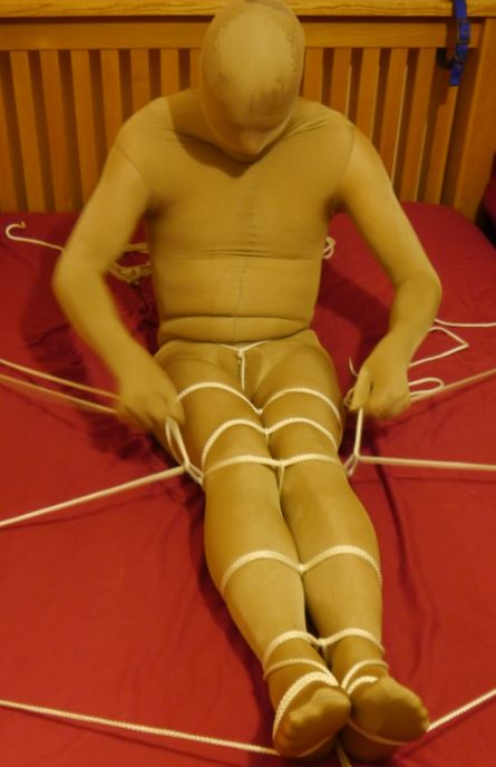 Either it’s my lower legs or else the model in the image isn’t really tied as it looks – try as I might I couldn’t get the ropes around my calf muscles to stay in place, possibly this due to the difference on male and female legs shapes?