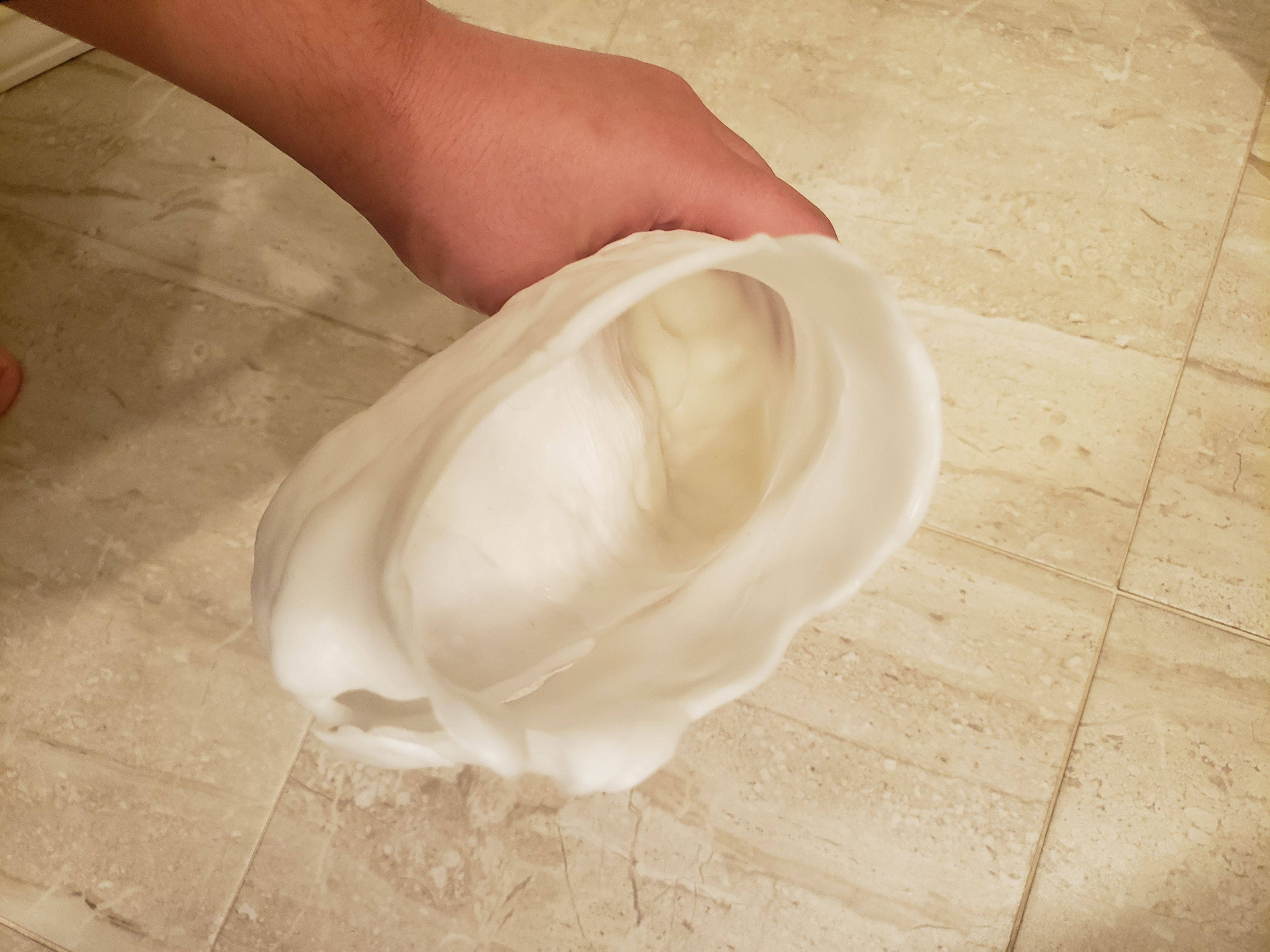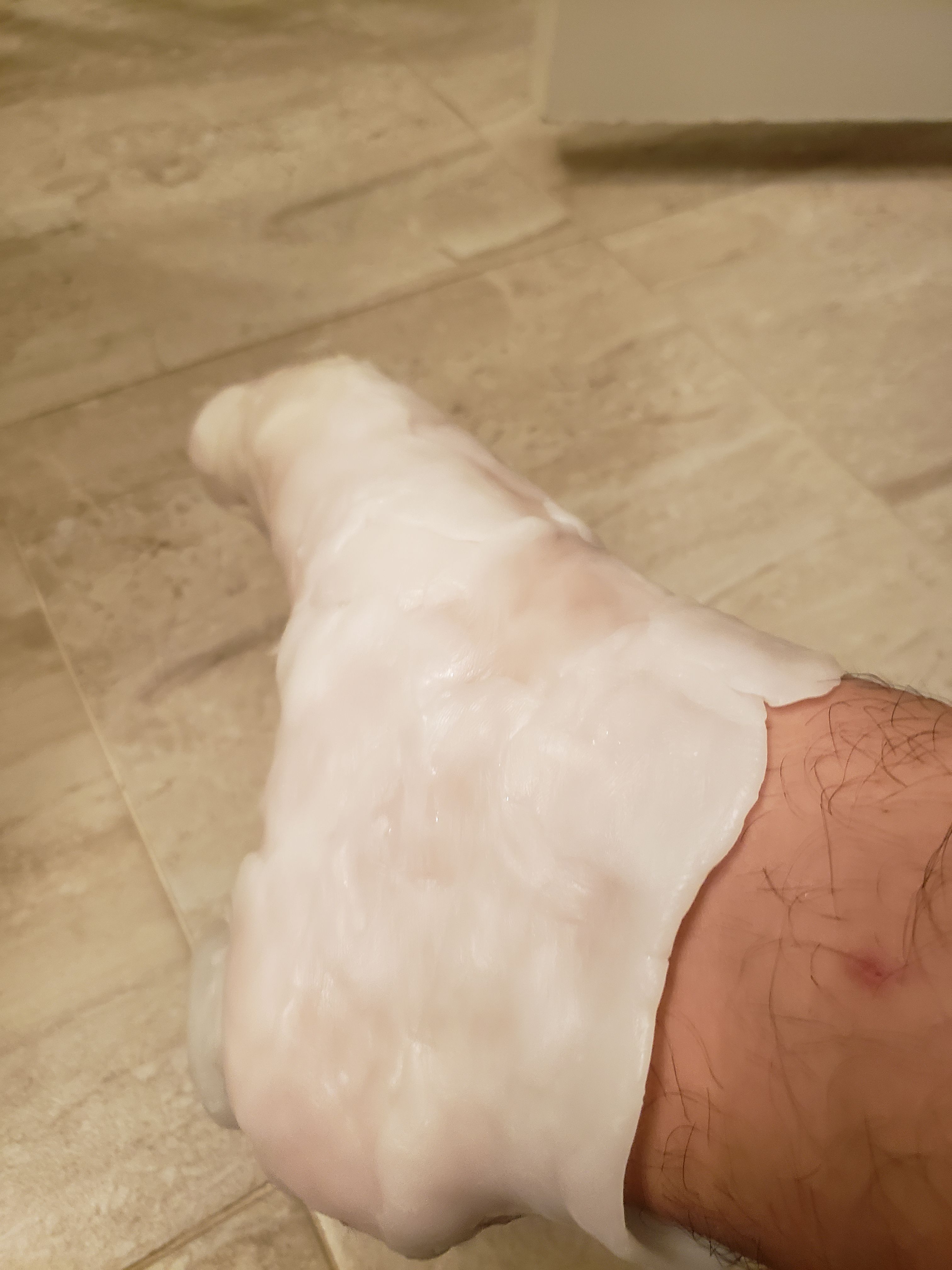 This took ages but why do I say the results were instantly worth it?  Because I tried putting the mold back on. Since the mold is airtight and modeled exactly after my foot that just came out of said mold the fit was perfect. The feeling I felt when my toes managed the bend and slid perfectly into the grooves with a slight farting sound was amazing. Even in its current form that prevents walking on it it still feels perfect, it doesn't slip or have uncomfortable sides and it isn't even supposed to be the shoe! My greatest worry at this stage is that even the positive cast will have warped dimensions, if it does then I won't be able to have the supremely comfortable shoe fit.