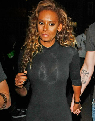 Melanie Brown's interesting new catsuit.