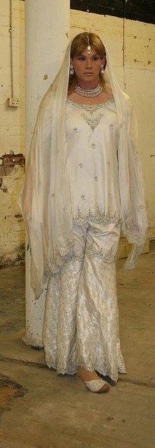 Now, how to acquire a sari fetish?`I am not sure, how it happened, I first liked the look of women in saris, I like the idea of a slightly restricting garment - which is not true unless you wrap it so - and I do like silk and smooth cotton cloth. Furthermore, I like the Indian cloth patterns. That is enough reason to be interested in saris. Eventually, I found my mother's sari in the attic and experimented with some wrapping. I had no clue how to wrap a sari, but it was fun and I discovered that I liked this game. And it was very arousing too, I had to be careful not to come into the cloth.