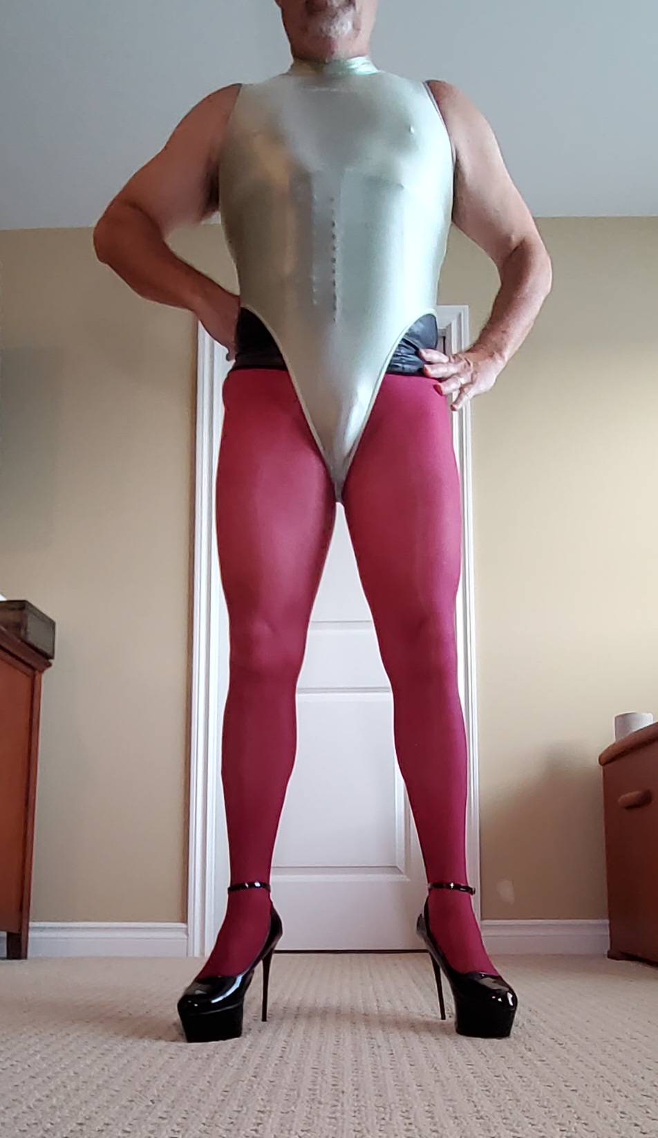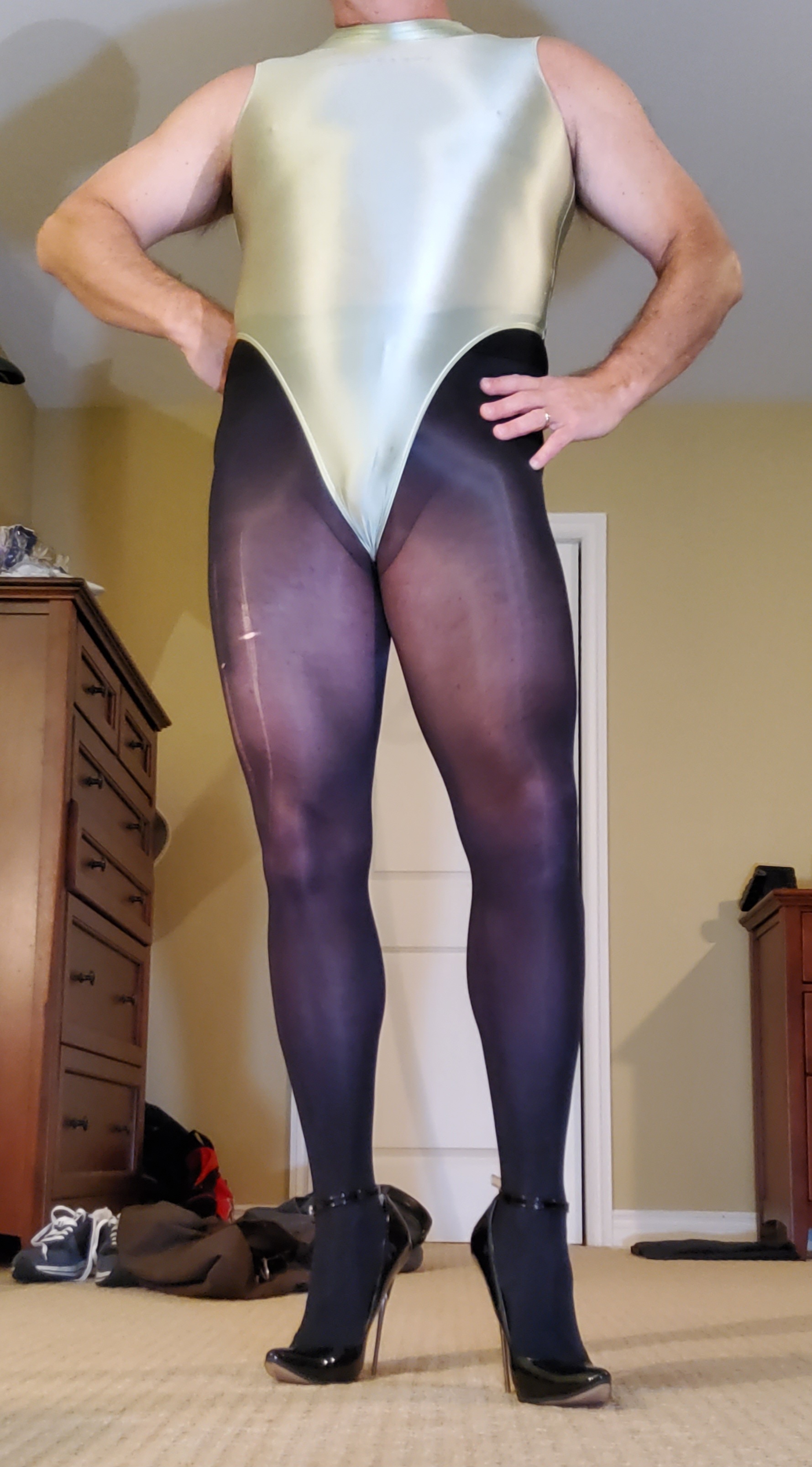 I dare say that if you put any man into tights and a leotard, give him some privacy in front of a mirror; he will not be able to resist experiencing a physical reaction just as strong and nice as what we see here…Â