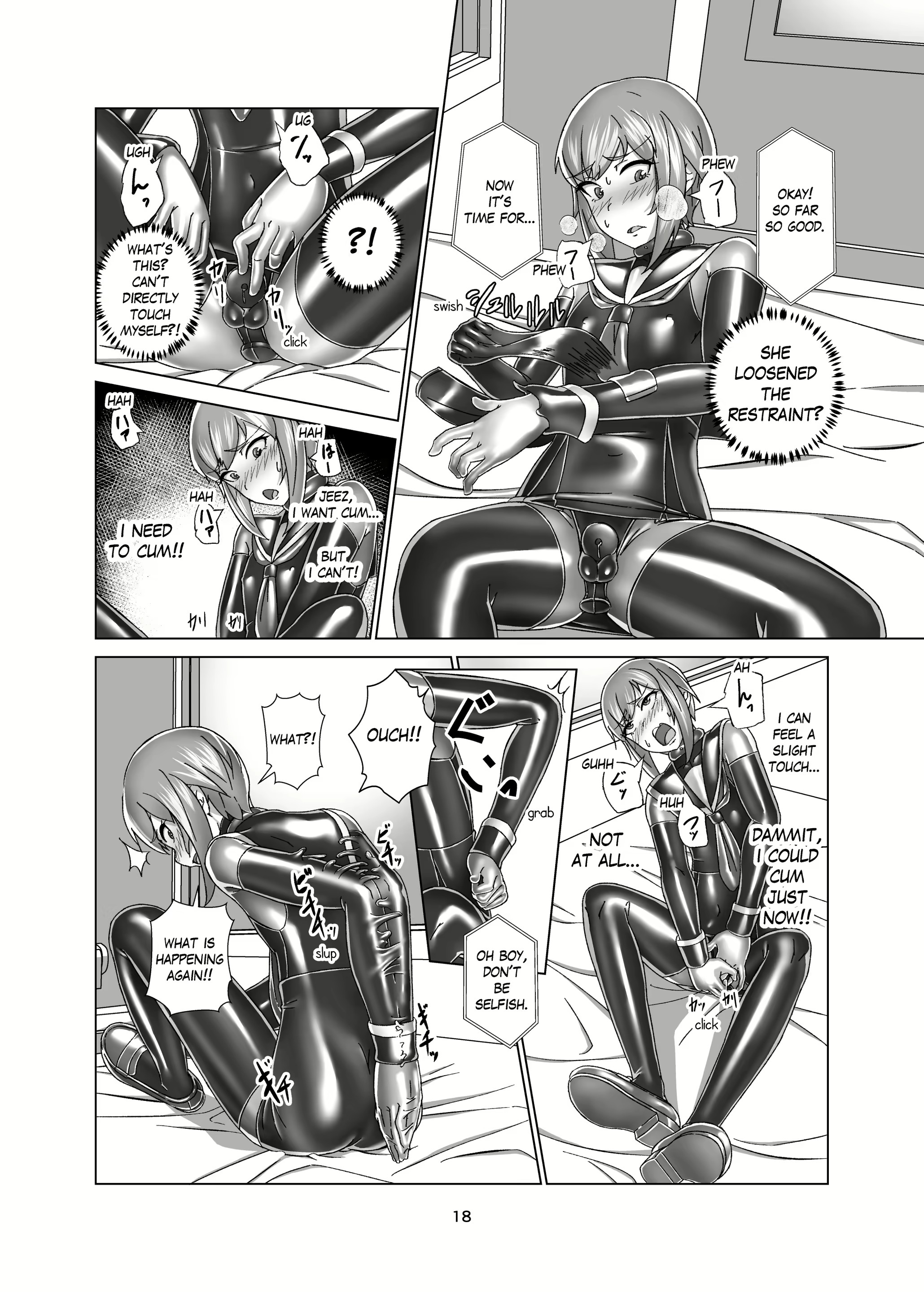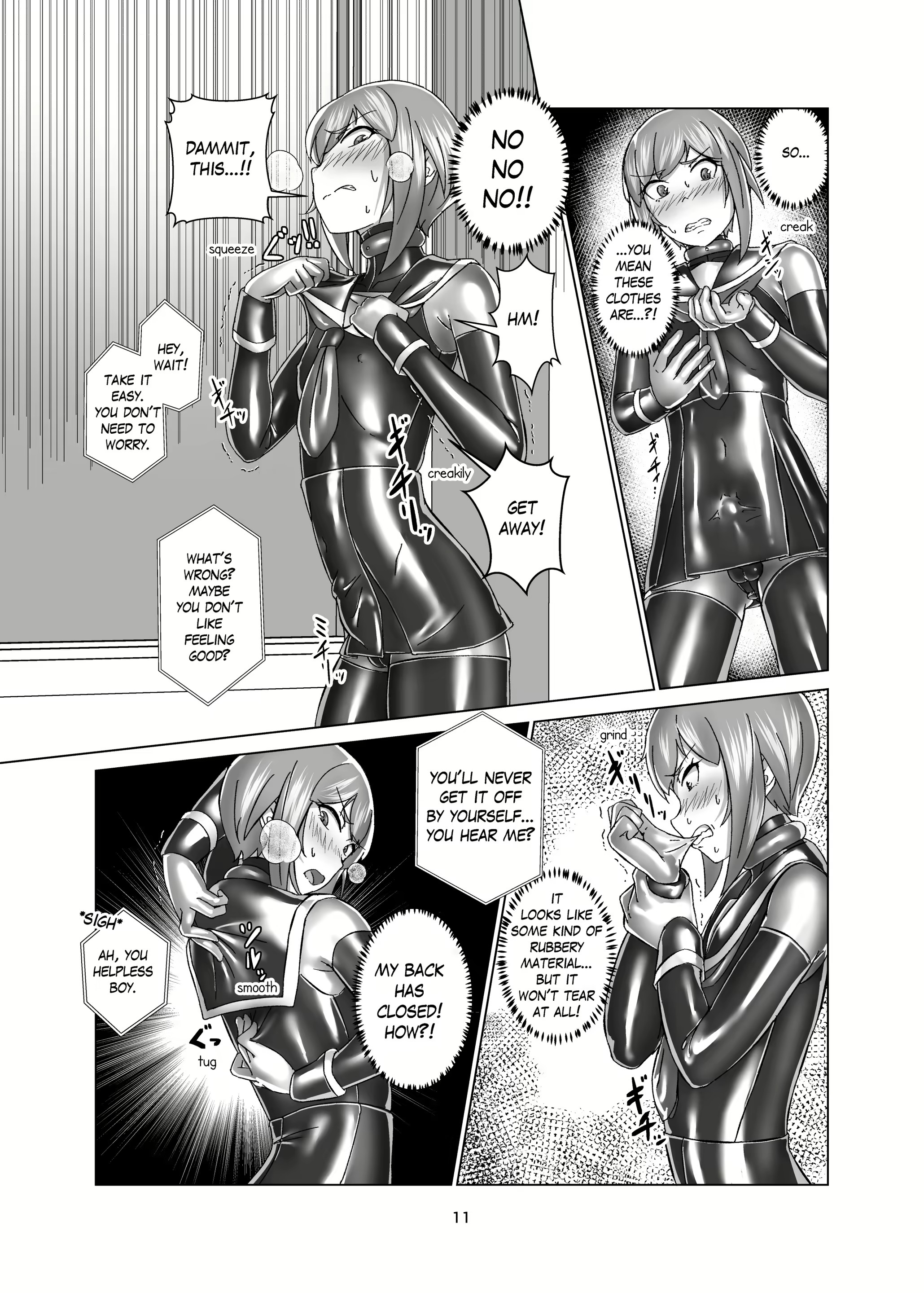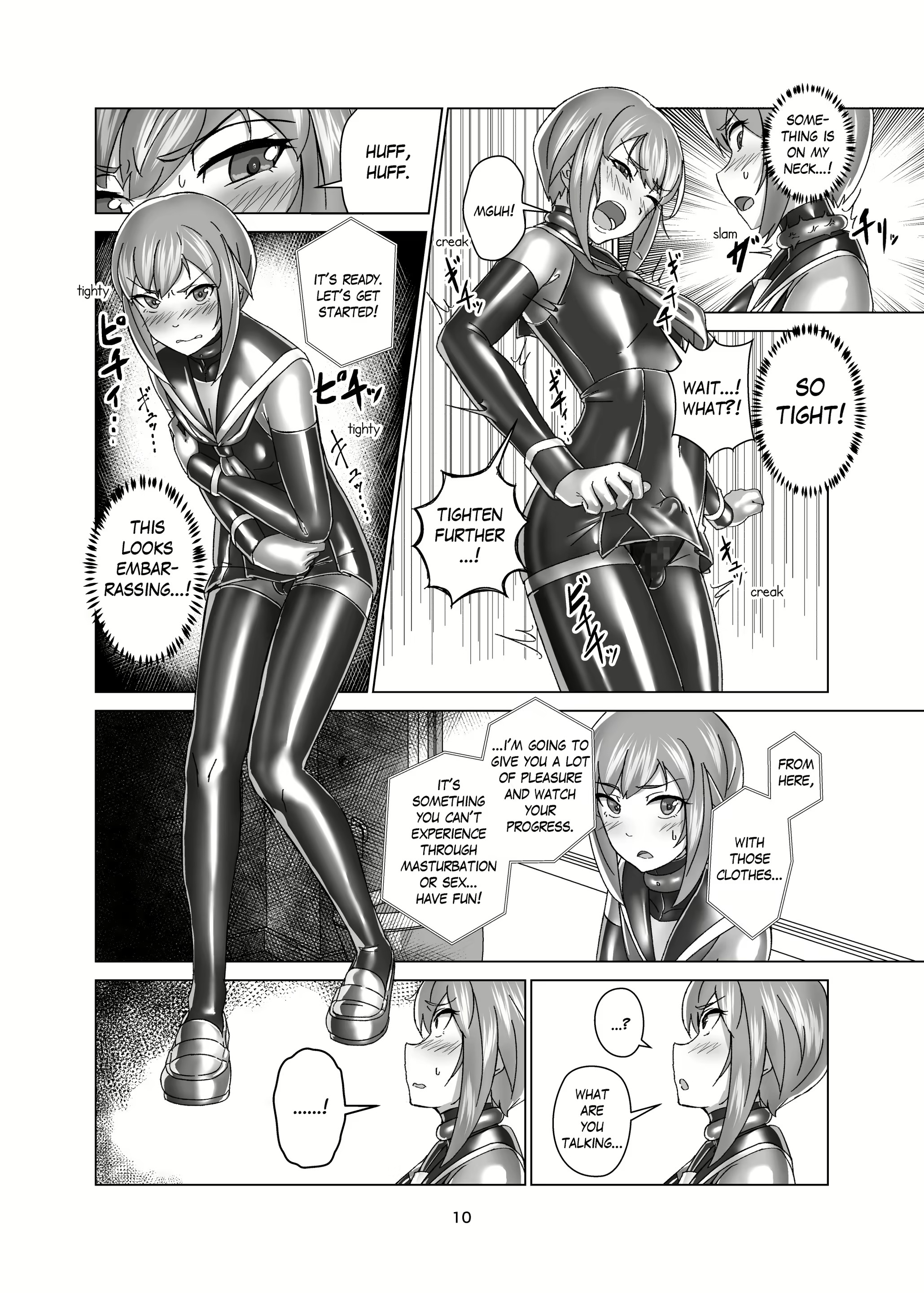 I've finally found an English translation of what's my favourite heavy rubber bondage comic ever, Kimi Senyou Kousoku Kyousei Mesuiki Suit by Gumi11. Feminisation, butt plugs, sounding, chastity, ballet heels, this has it all.