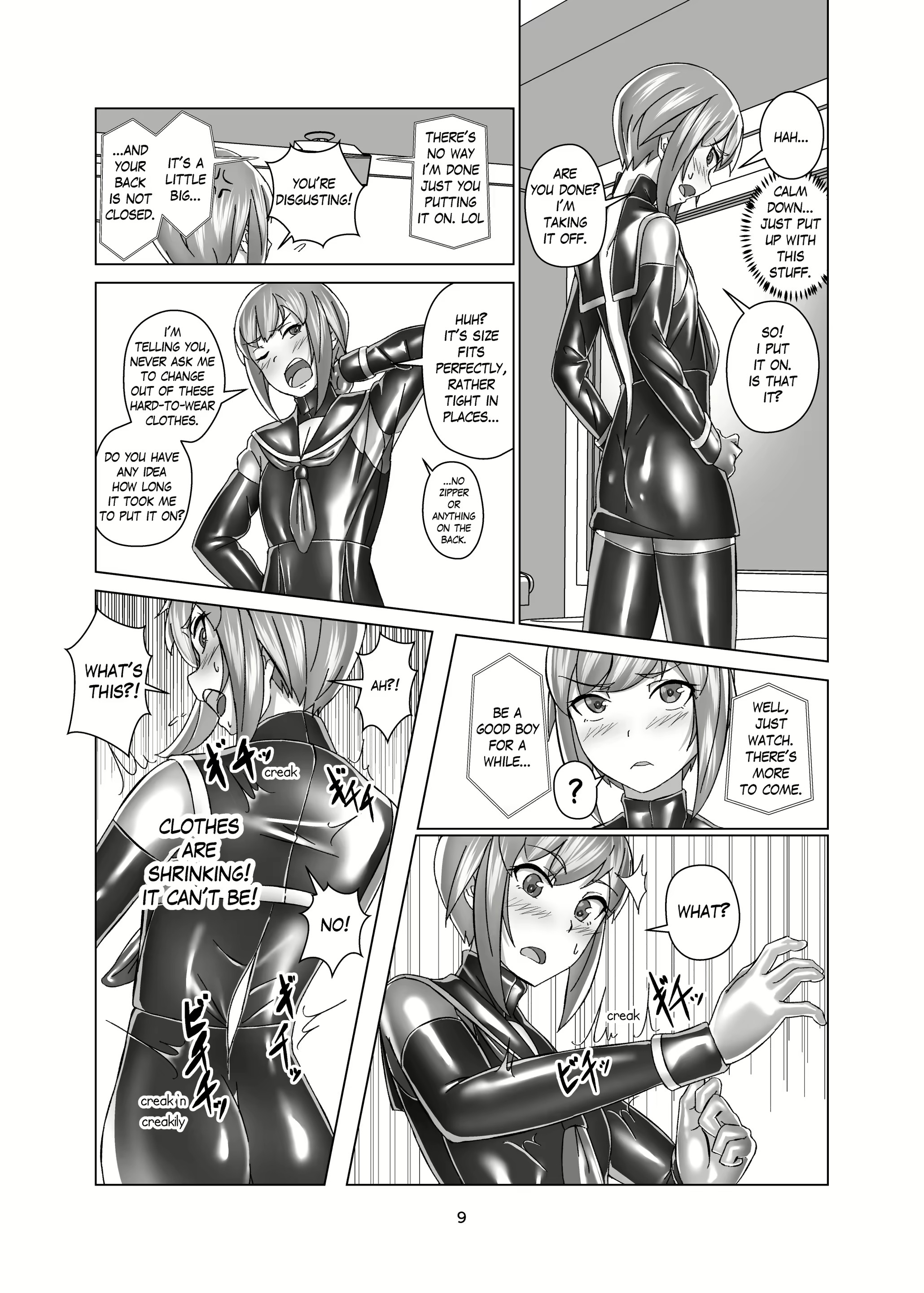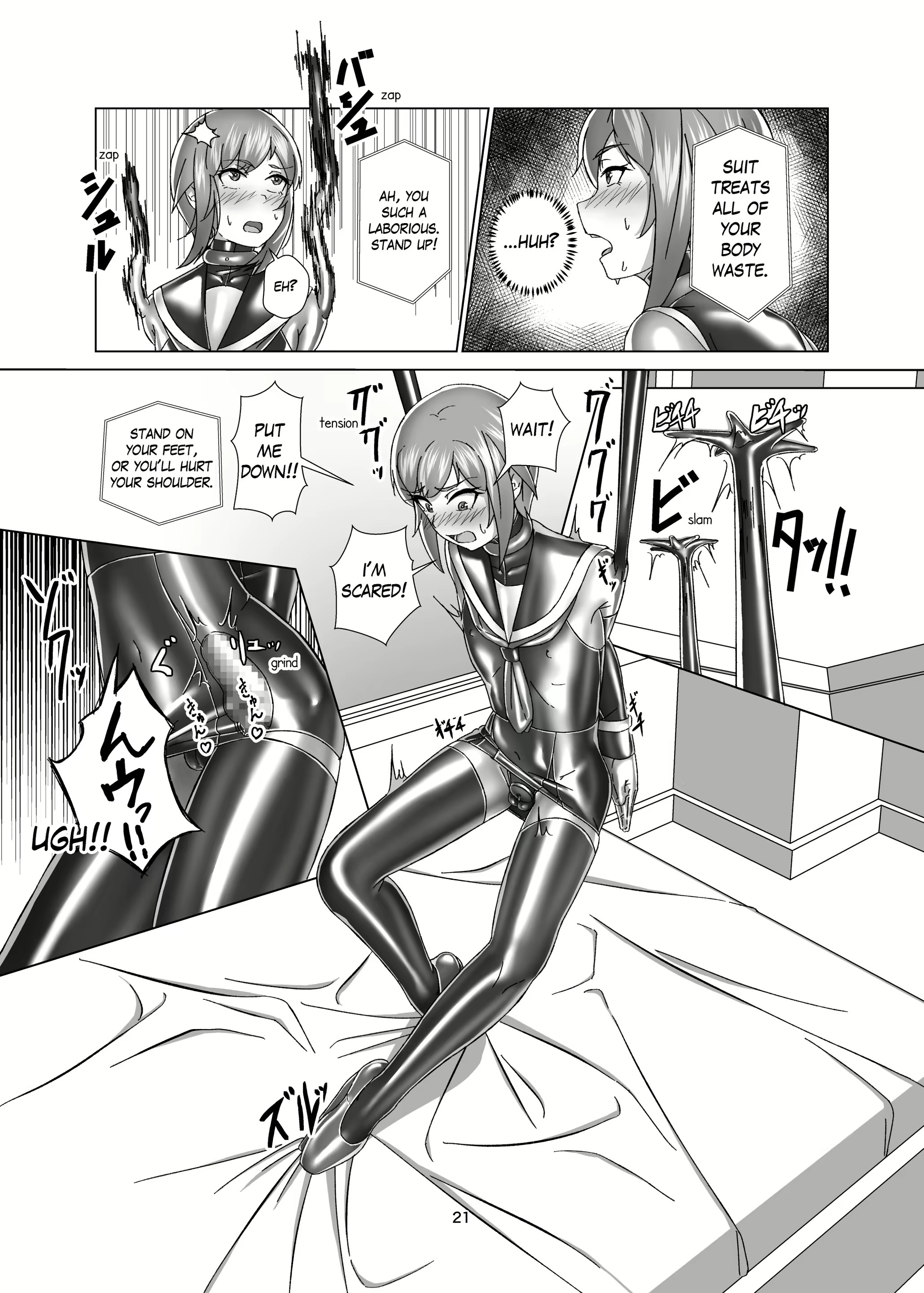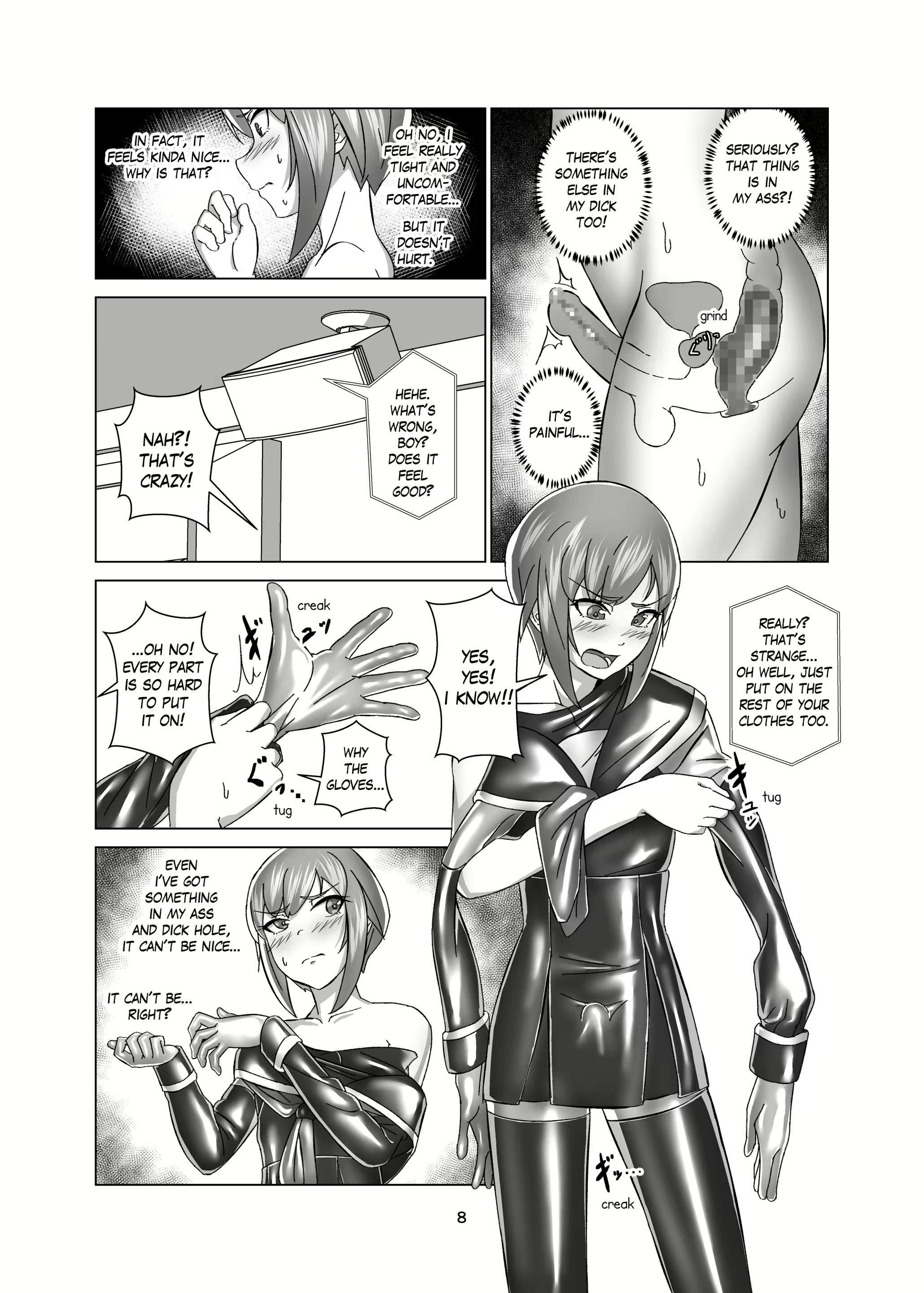 I've finally found an English translation of what's my favourite heavy rubber bondage comic ever, Kimi Senyou Kousoku Kyousei Mesuiki Suit by Gumi11. Feminisation, butt plugs, sounding, chastity, ballet heels, this has it all.