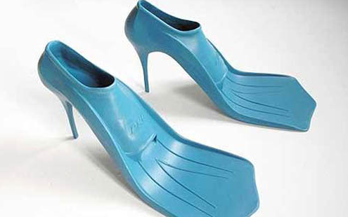 Girls always put heels on everything. Check out this photo from Beowulf starring Angelina Jolie: