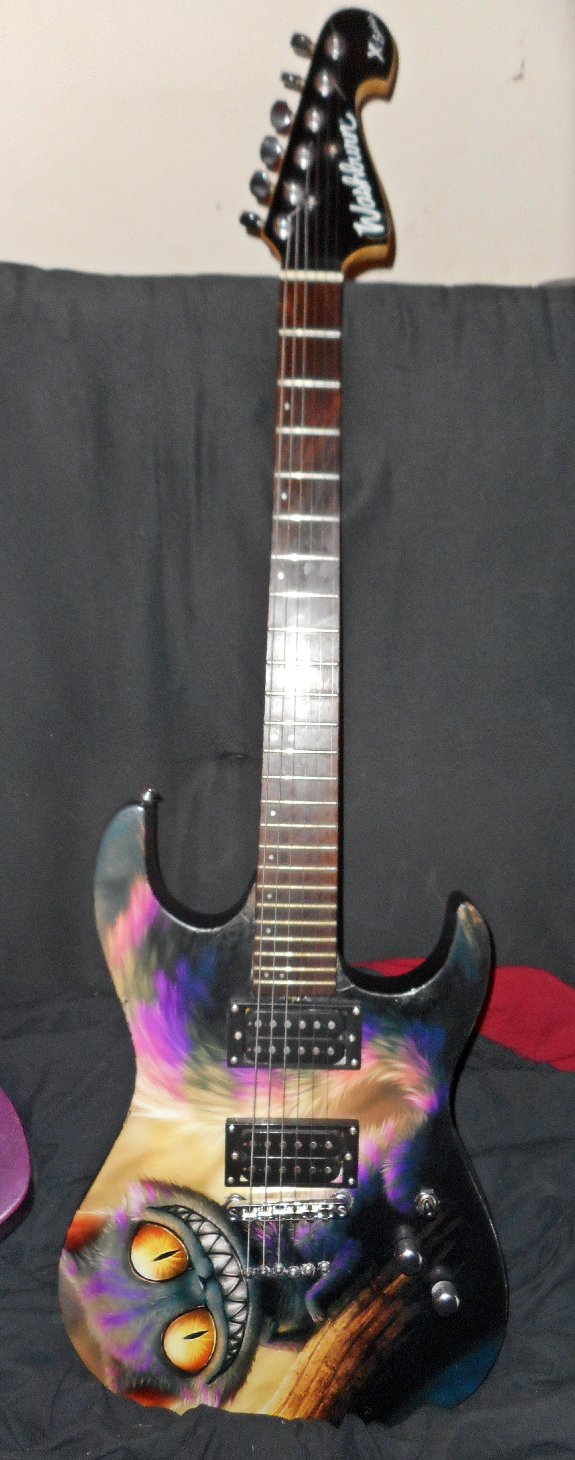 (15 Jan 2022, 21:17 )vanessa_fetish Wrote: The top one is a refinish of my wife's Washburn guitar Is it the Cheshire Cat? Love it!