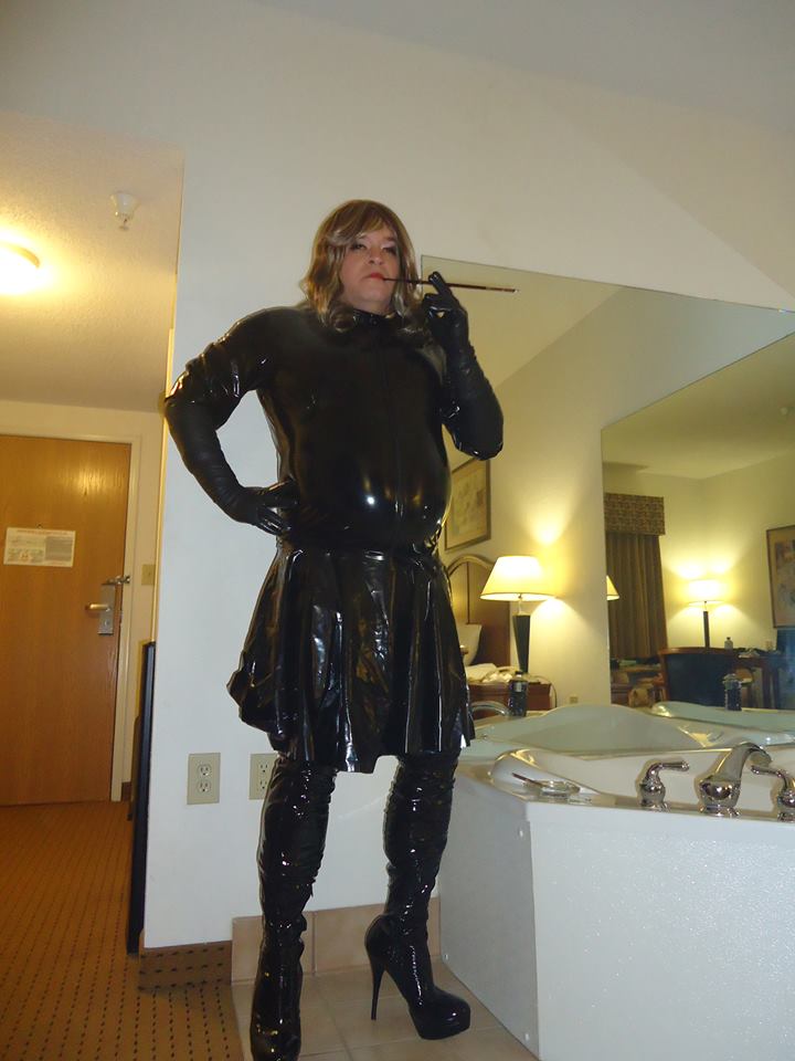 I dont know where I really fit into all of this. I love being dressed up, but as of yet, I have not actually worn female clothes, etc., other than what you will see in my photos. My wife has made a fantasy of mine a complete reality and she loves the idea that she can play with the idea of bisexuality without actually doing it with another women. She gets the best of both worlds when I am dressed up and we make love. She and I both have fetishes for breathplay (plastic, underwater,) and smoking long 120mm cigarettes (or longer) in cigarette holders. I am just a year into this really so I dont know where I intend to go with it, but for now, I just need to purchase some more pvc clothing as I do not think I will ever look great in womens clothes. I am just too big in body structure. When I wear my boots, I am 6'6" tall.