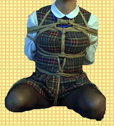Inspired by artist BB's carton, in blue Japanese school long sleeve blue uniform. One of longest ones to tie myself up because of complexity of various knots: