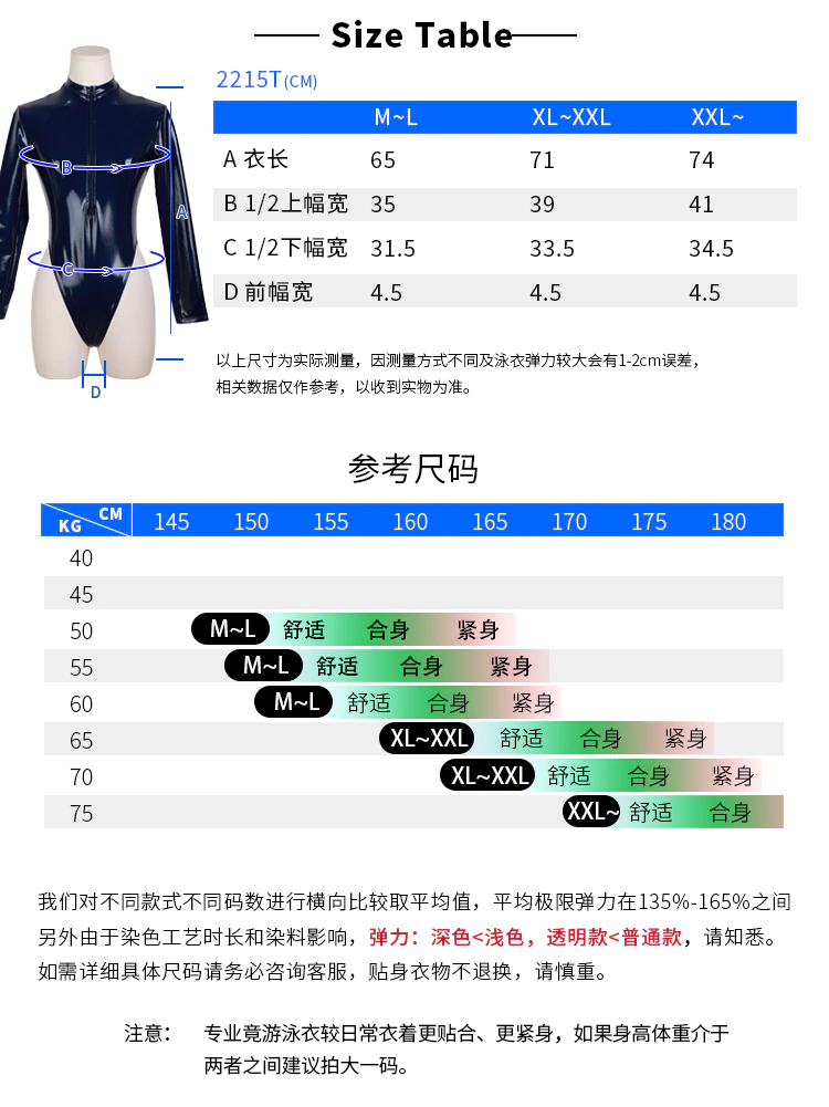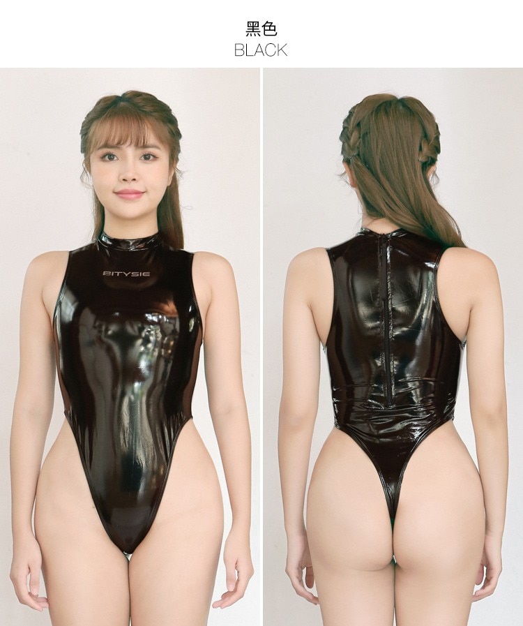 Enamel high-cut rubberized swimsuit According to the comments, Bitysie XXL- is about the same size as a 3L Realise and the quality is similar to Realize.