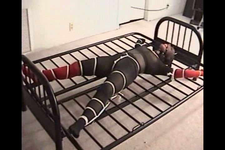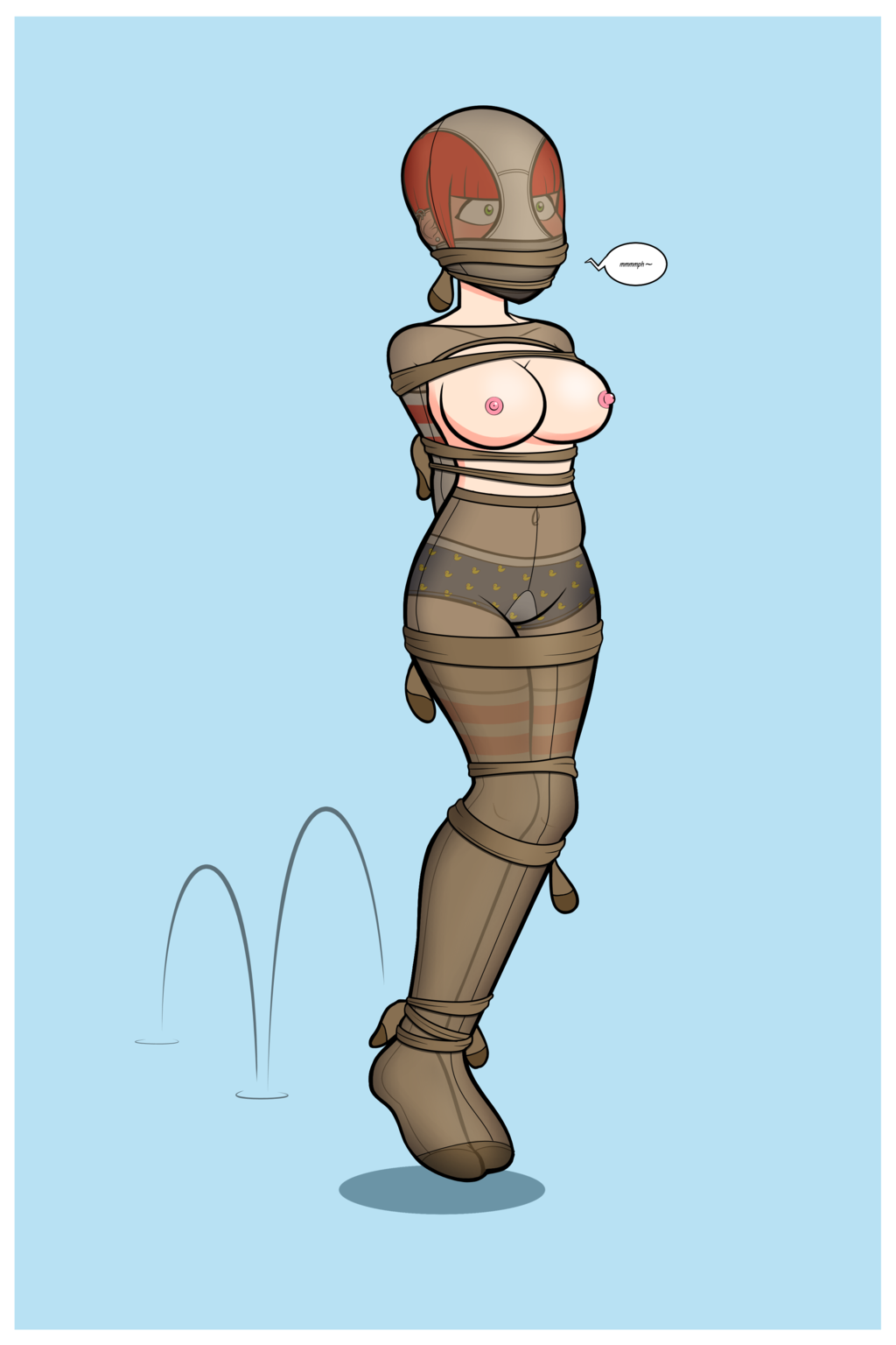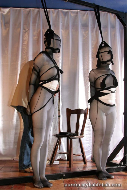 The forearms are taped very smartly, so there is a chance that arms will not go asleep. And the gag applied on top of nylon also looks nice. A bonus - it's all supposed to be happen in the office. Just one step left to make the hogtie complete... 😋