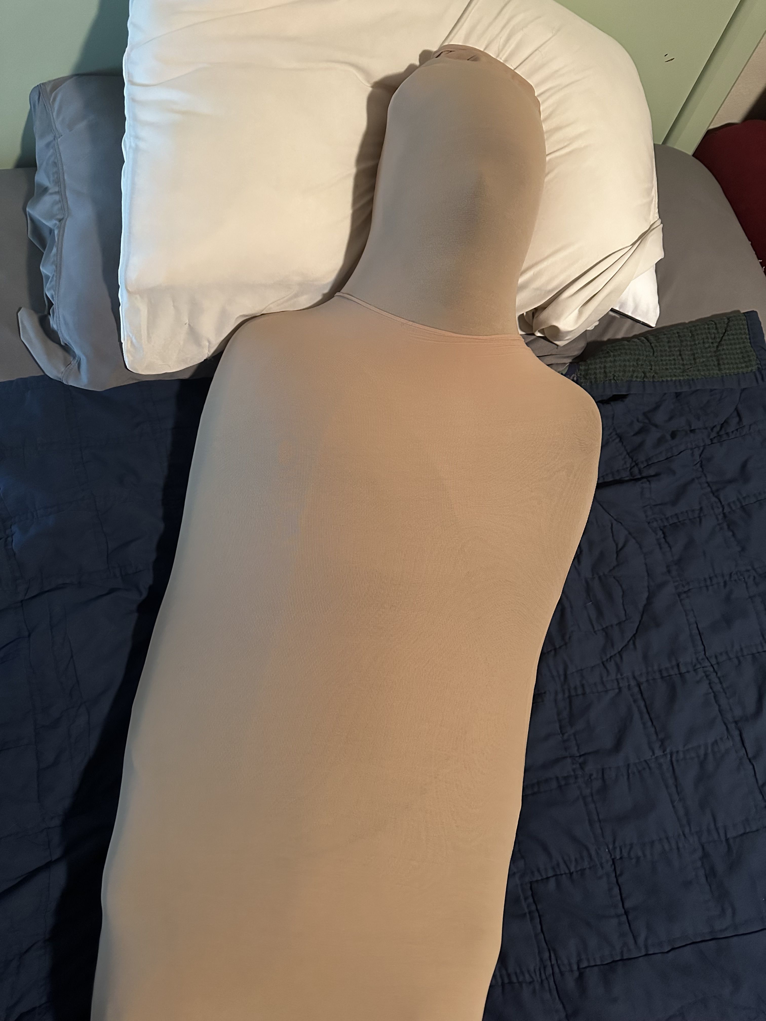 The best part of cocooning is how your “victim” will try to help you as you start putting another layer on them. They’ll help by lifting their legs or their butt so you can get it under and around them…