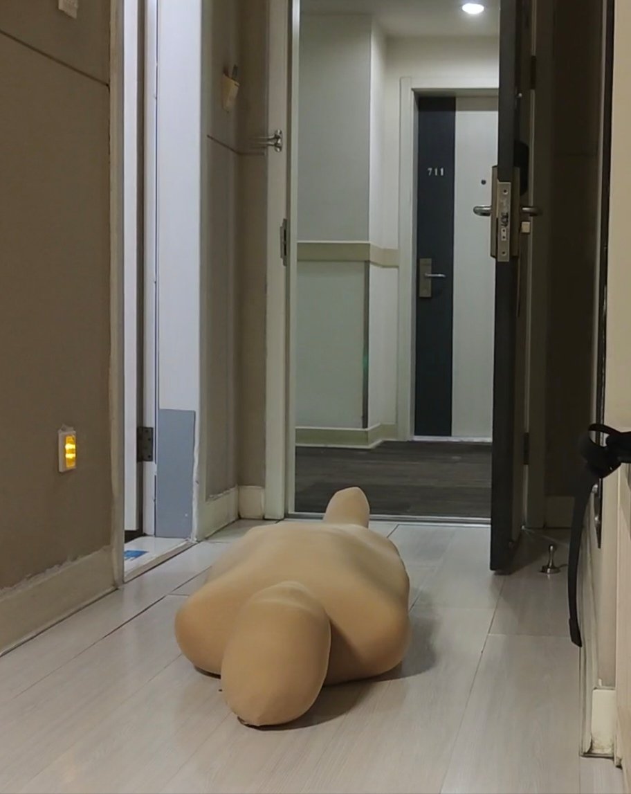 Was a little confused I thought that the person had both their legs inside one side of the pantyhose, and then the other leg over their head and their arms up inside the upper pantyhose leg section. I didn't know it was a sack like that! |