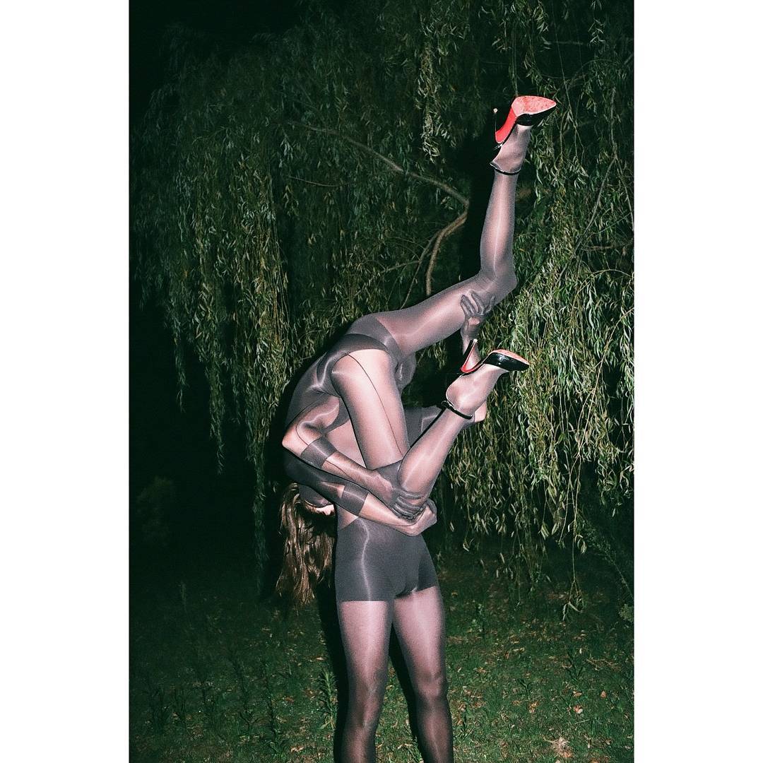 https://shapings.com/pantyhose/hyde-park.html Finally, reminds me of another artist, Vanessa Beecroft who has done some wonderful group pantyhose art: http://www.liarumma.it/exhibitions/vb26-1997/ I'll just leave this here:
