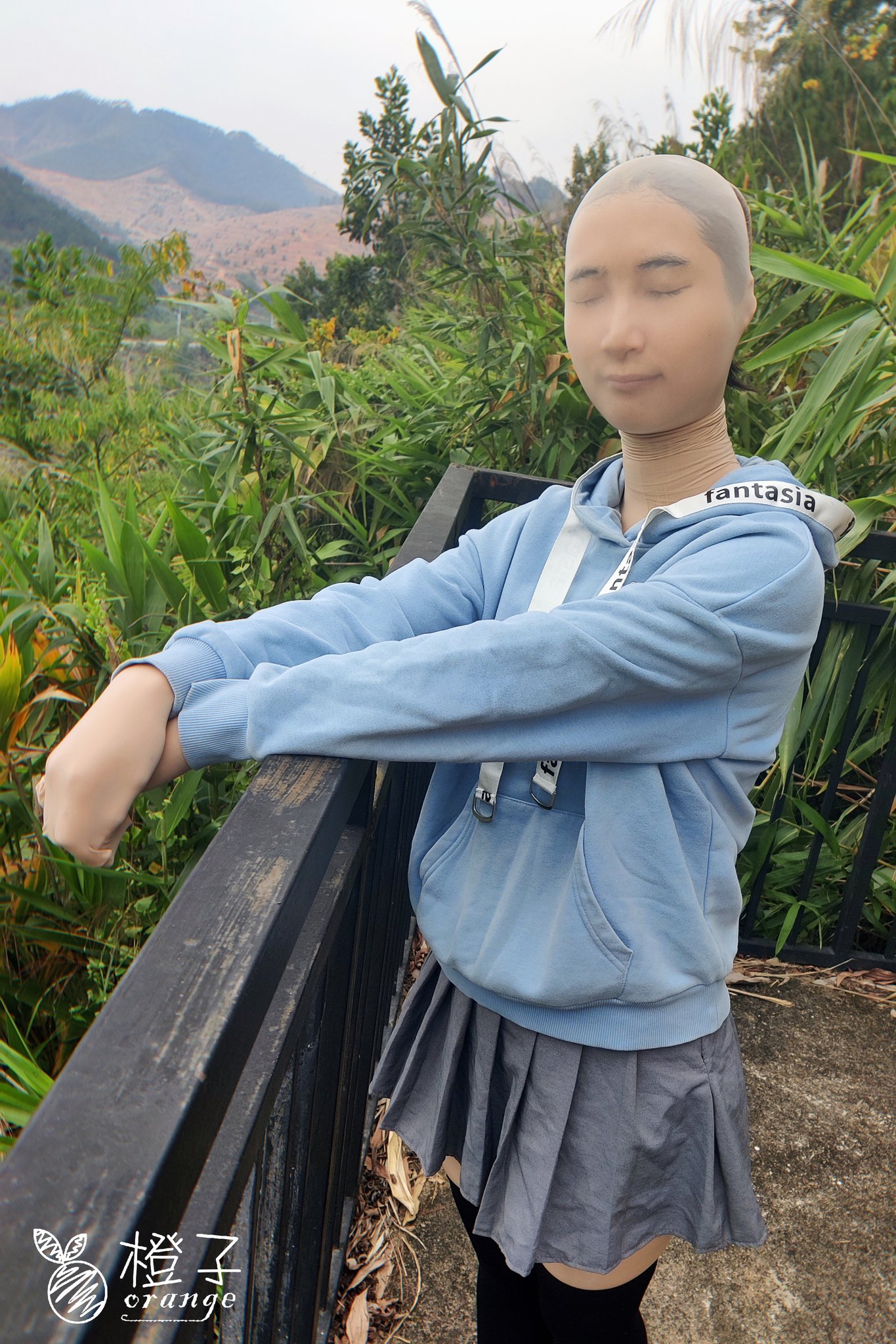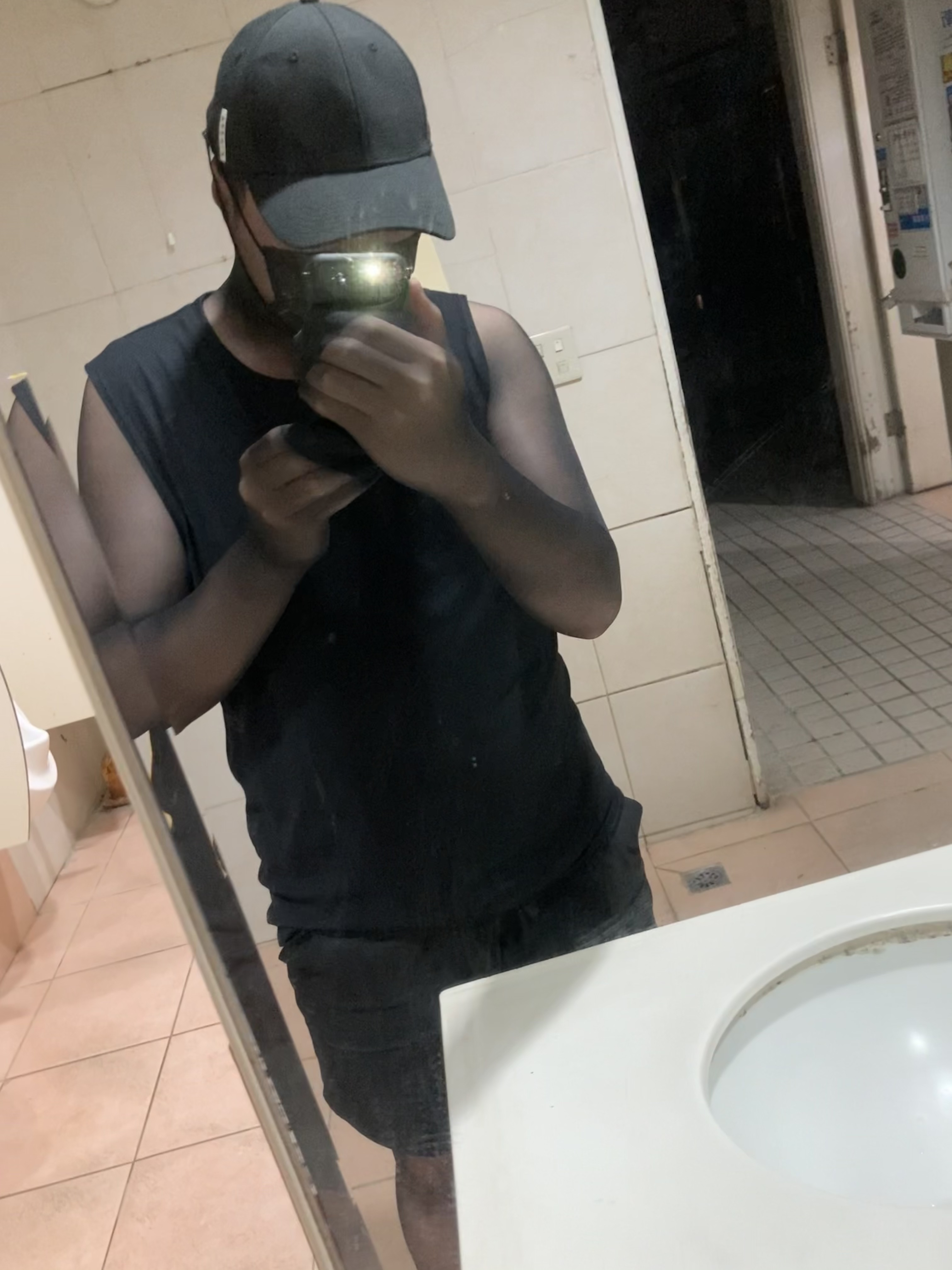 My outdoor encasement with clothes, cap and mask at night
