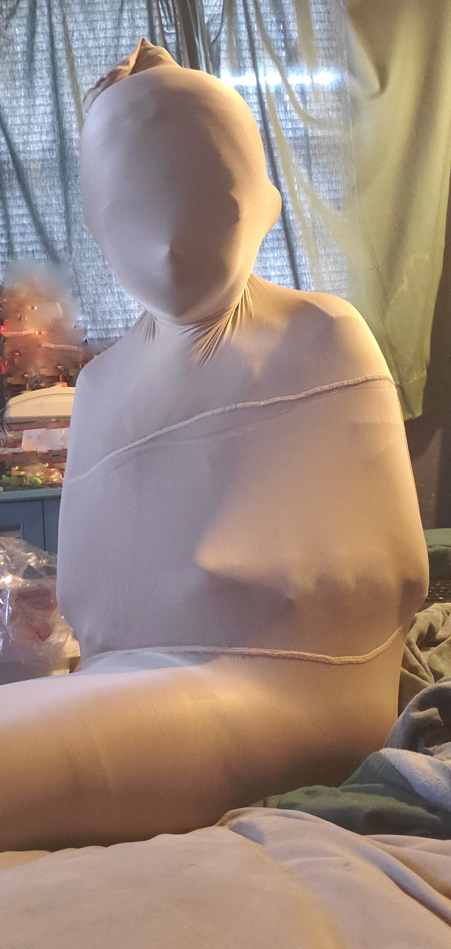 I do animegao kigurumi cosplay and wanted to do a pantyhose encasement pic with it. 😊