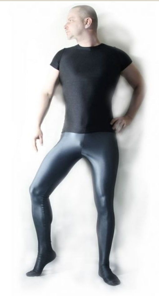 Very interesting shiny pantyhose for men,but I wish the seams were "behind", not "inside", though:
