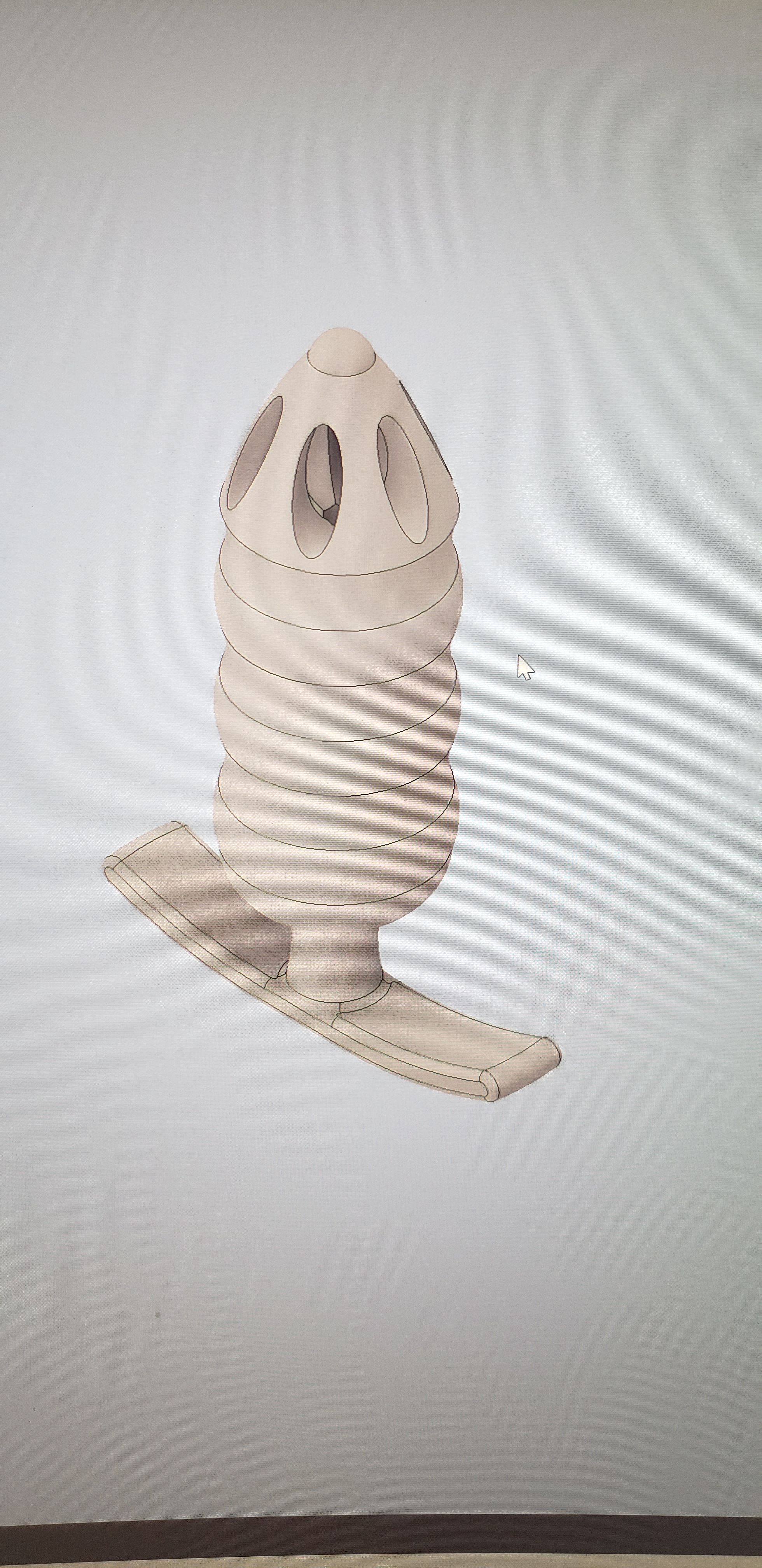 version one of learning to make a butt plug. Simple curved retaining slit. Needs more work on the surface and the tip should not be spiky.