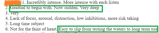 well I won't argue that my early experiences certainly sound in-line with those testimonials, but I really don't feel any kind of addiction to the files or anything like that, so i'm not too worried (yet) 😋  I may revisit some of the earlier ones, see if there is any difference