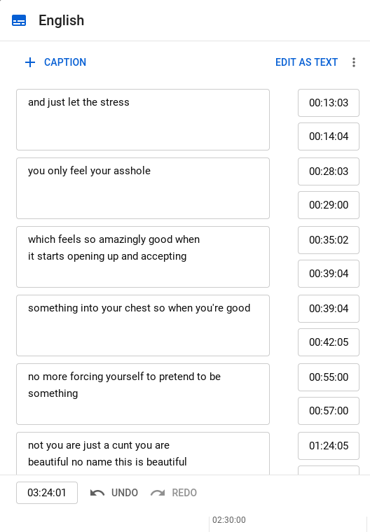 Too difficult for youtube neural networks - some phrases, some words. Pretty much useless without actual listening, repeating it a dozen of times and writing. And I can't even finish one script for @brasco for months 😆 So, without help from you guys, it's not gonna happen.