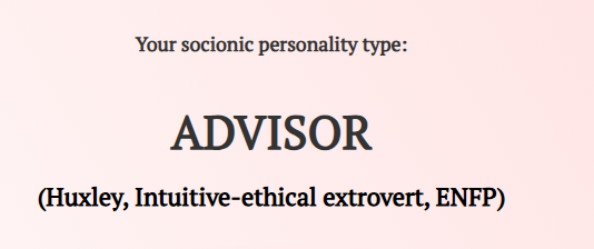 Interesting... I need to think about it... (As I never thought about your type before 😁). BTW, if you are ENFP/IEE/"Huxley", you might find the whole subject of socionics, psychology rather interesting. Possibly, not the typology itself, ENFPs usually do not need a typology for people, they remember them and generally understand them without any typologies. They can swear by the typology, though, if it's adopted/approved/blessed by highly authoritative, well known professors (and blame all other typologies).