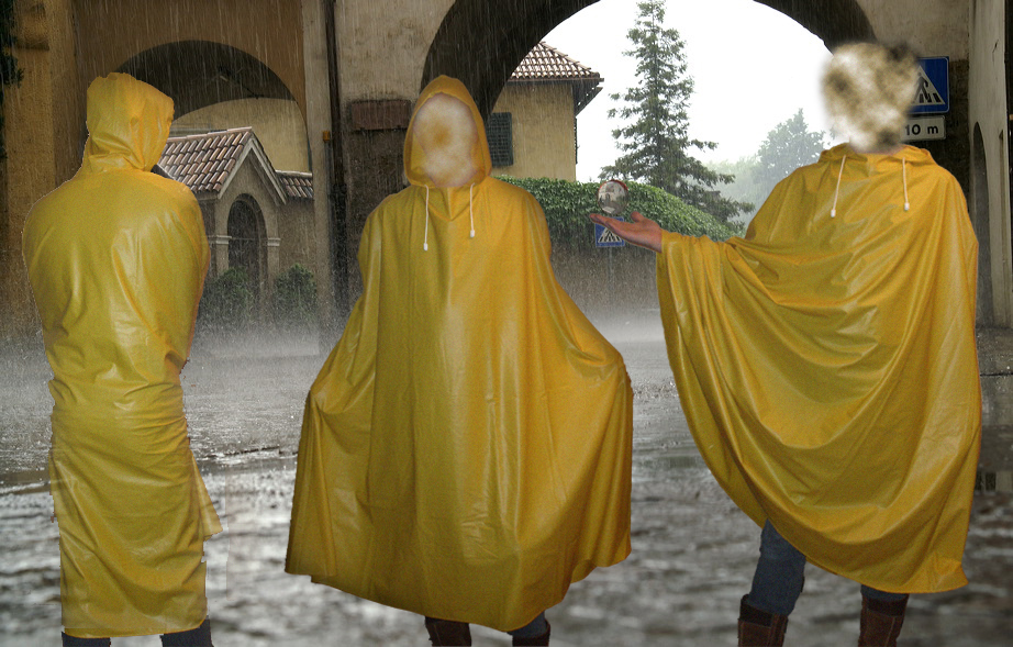 Then I had a time, when I often went to sex shops to look around, and saw a great rubber cape, buttoned in the front and very slim cut, even the hood was pretty small. The price was outrageous and so I could only dream of it. I think, I had a real rain cape after that poncho, but I can't remember, it can't have been that interesting for my special desires.