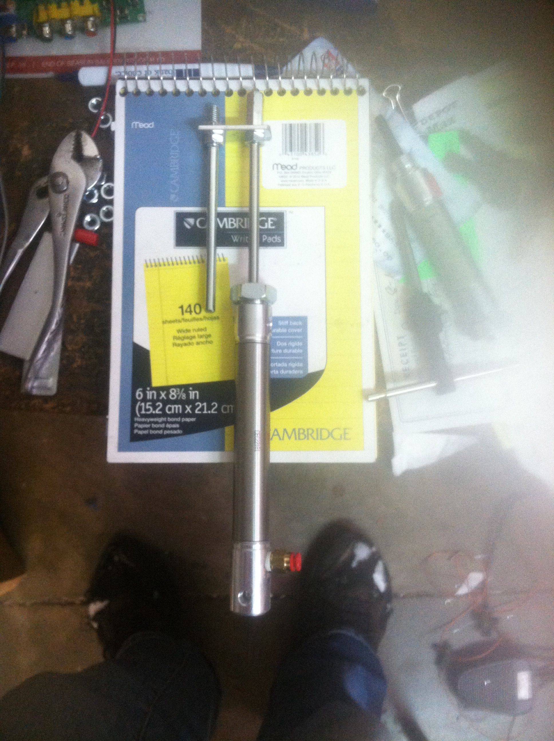 Here is what you'll need. 1 1/4 inch connecting nut, 3 1/4 standard nuts, a 6 inch bolt with the head cut off. Your air cylinder with a 6-7 inch throw and 2 metal brackets.