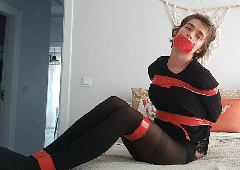I have been interested in self-bondage for a long time. but I never had the opportunity to buy equipment and at the same time I have never been good with ropes. for this reason I use tape to tie myself up and gag myself, except for a few photos in the attachment, the things I have tried are very few (its me btw) I have tried self-mummification and leggings armbinder and now I want to try different things, maybe I combine what I have tried before or do different things, I don't know, but I need selfbondage scenarios that I can do with tape or simple things at home. in general, what I want is to stay bound and gagged for a certain period of time. I need creative people who can help, thanks in advance.