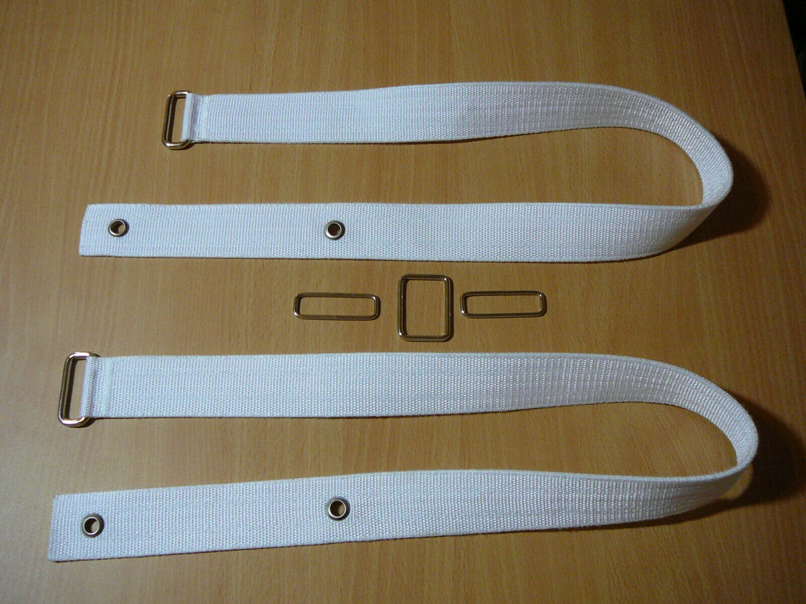 2 Gurte jeweils etwa 90 cm lang (mit Schlaufen) ohne Werkzeug unzerstörbar