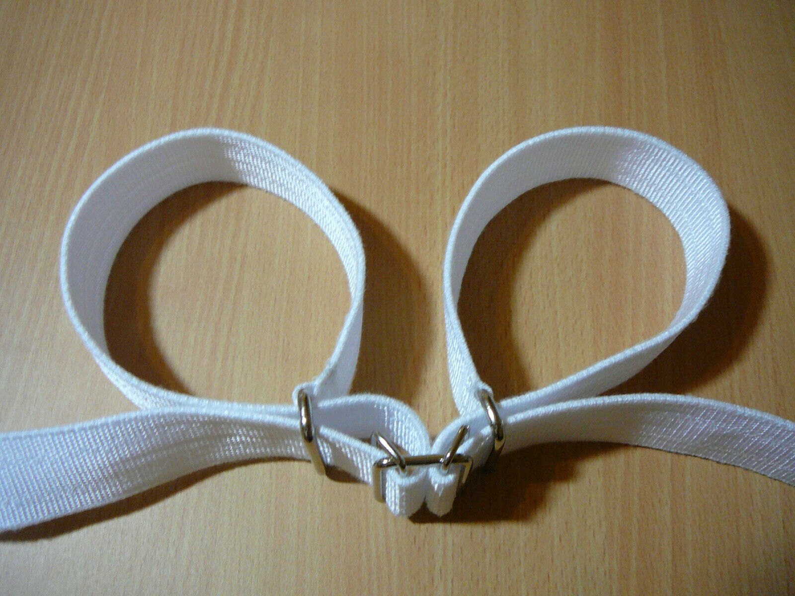 Bild 4: Doppelte Schlinge um die Gelenke, beim "dran ziehen" wird sie immer enger und ohne Hilfe nicht mehr locker. Blutzufuhr an den Gliedmaßen bitte beachten!