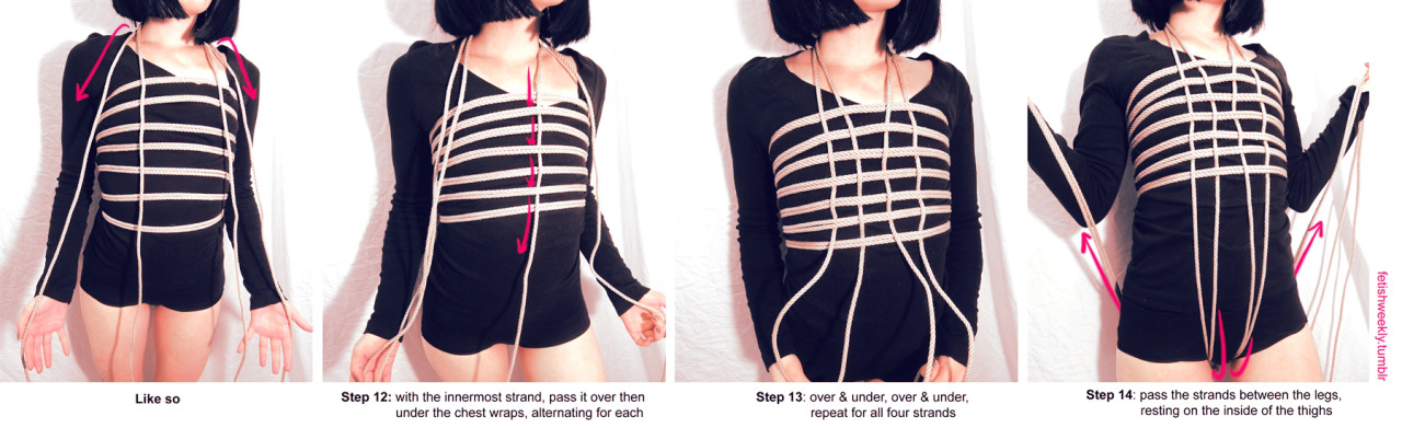 Wow, some nice patterns! However, there is always the most important point missing: Binding the arms and hands. I have a few methods that I often use, but no fotos yet, although I know them for years. No promises, but this thread reminds me of that task... Some of these harnesses provide a real good basis for further bondage.