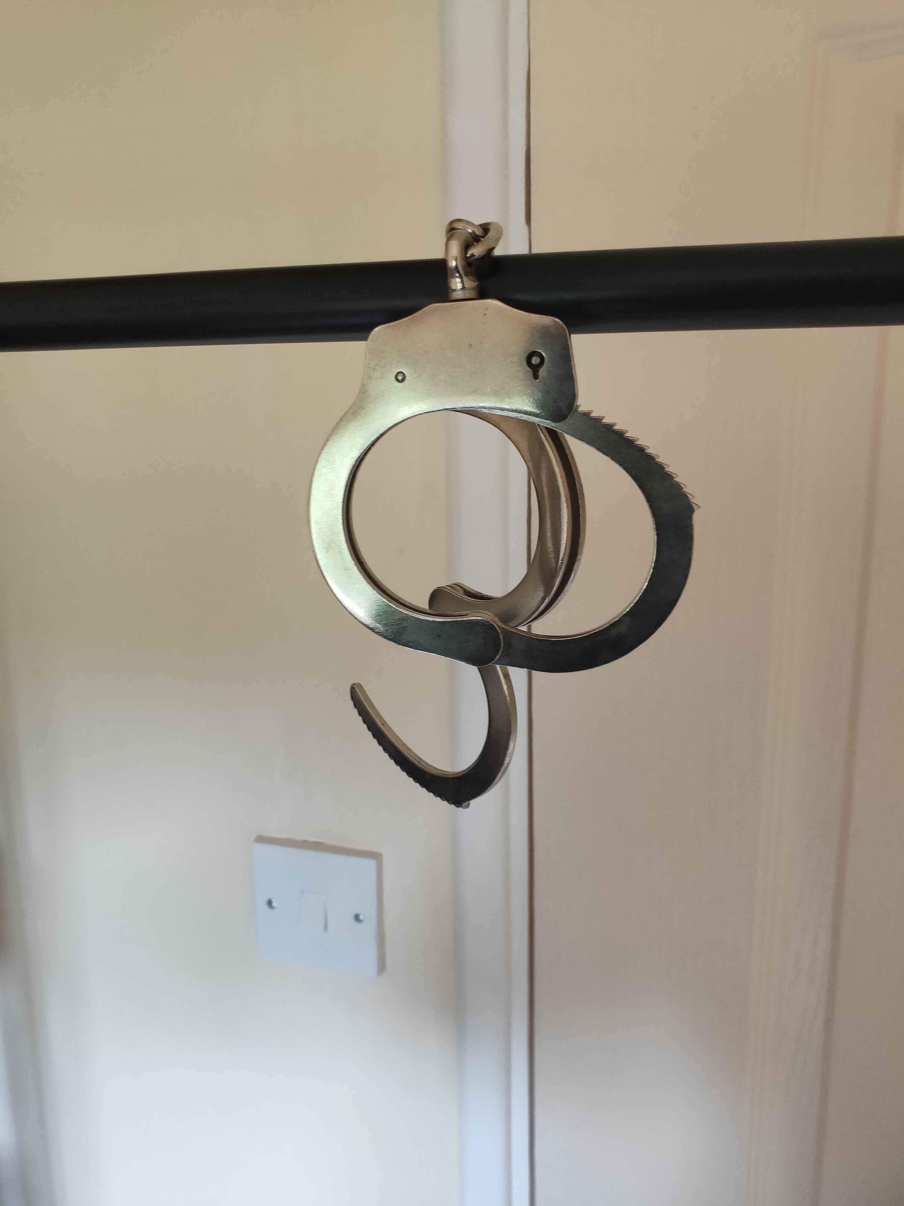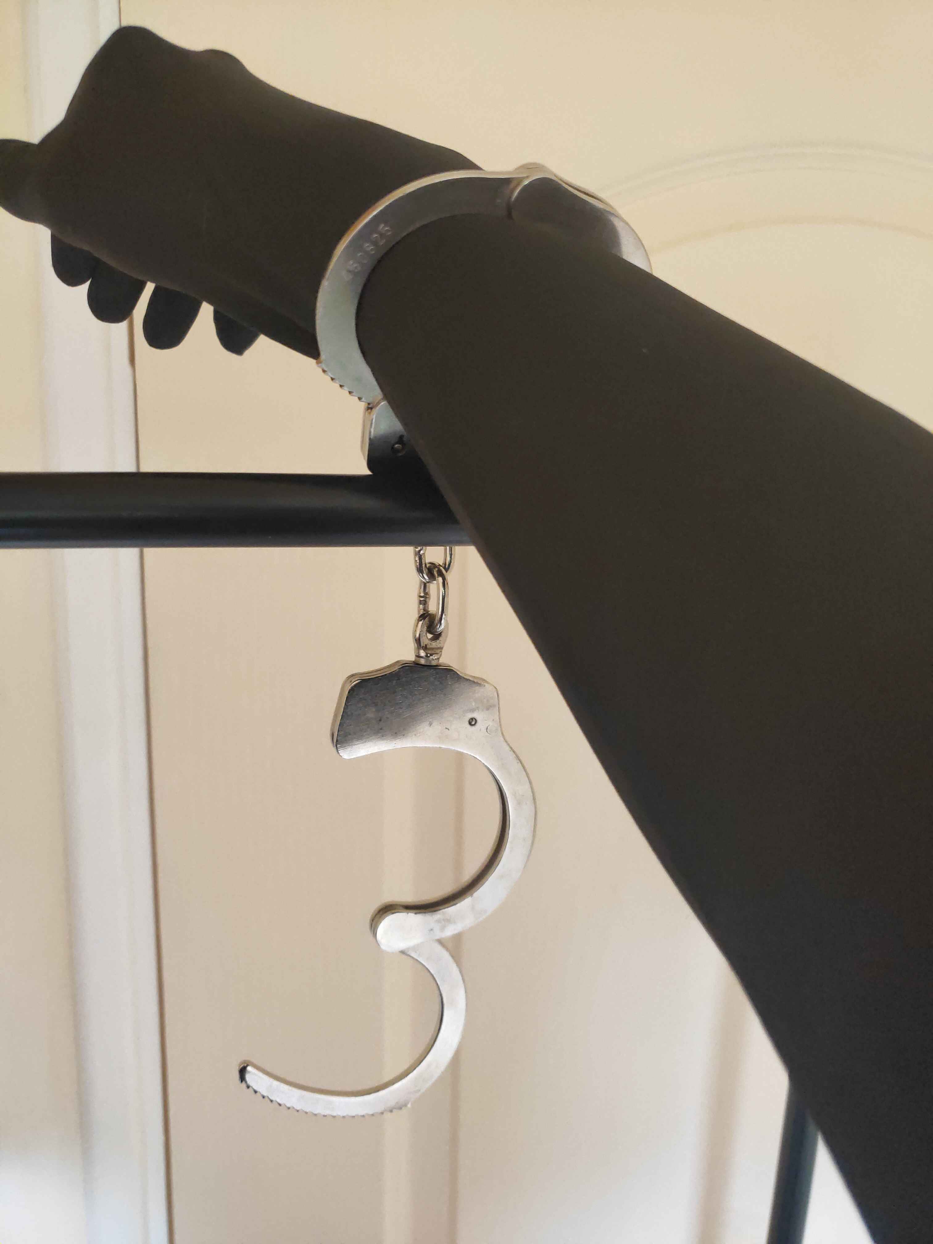 A short session involving handcuffs and a morph suit, honestly this was pretty uncomfortable. The suit squished my nose a lot and the heels were killer! Definitely better for spreadeagle bondage or hogties than standing upright. I was restrained for about 20 minutes before I couldn't take it anymore.