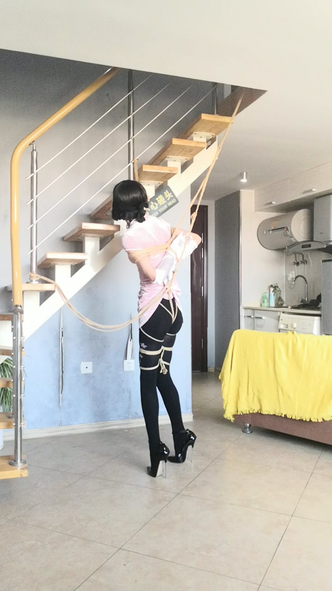 一只萌熊 Wrote:A simpler method of tying hands is to make a rope loop, press under the strands, reach in with your hands, and get off the stool. (If the shoes are too high, it will not be easy to untie, and it will take a lot of energy) Source: Source: https://twitter.com/aSFU5XHY97KWr98/stat...4400579594