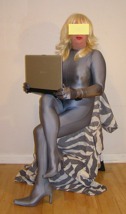 My lycra suit with attached shoes, influenced by Seven of Nine, of course (apologies but I'm feeling a little shy this morning)...a 'work in progress'...
