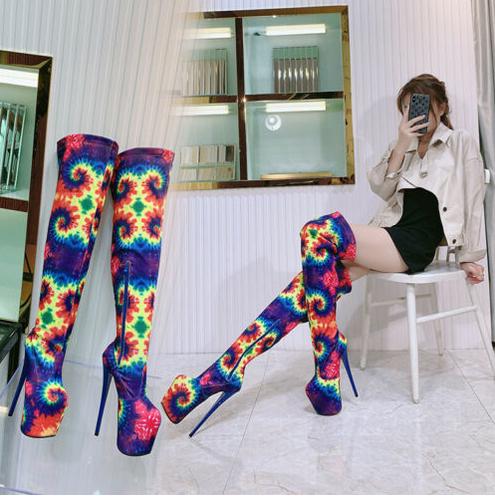 Women Platform High Heels Boots 19CM-Stretch Over-Knee Thigh high