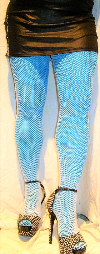 Layering is a nice look gives any hose a different look here are 2 of my layered looks. Am going to take more photos with glossy hose and nets soon.  blk mini pink tights & fence nets.JPG     blu tights wht fish mini.JPG