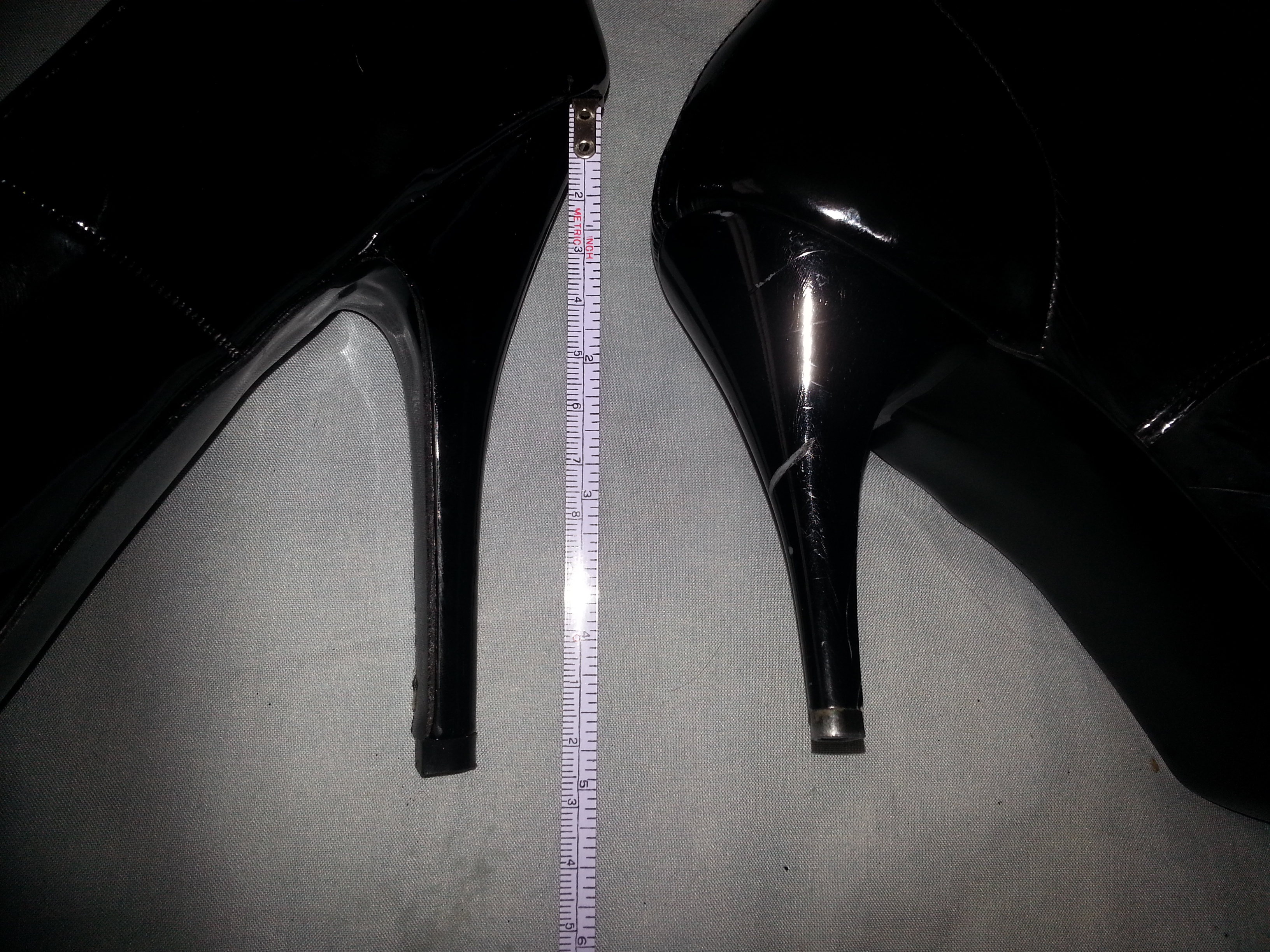 For the record here are my current heels, all brought off eBay from various sellers: - on the left are my lace-up ankle boots; very sexy and the first heels I ever owned. I find them very comfortable and quite easy to walk in. - on the right my latest purchase; simple and easier to put on than my boots. Challenging to walk in and very different to wear than the boots. I love the strappy 'Pleaser' heels but can't justify the price, I would also really like to try a pair of thigh length boots but can't figure out how to hide them when not in use! MJ (25 Sep 2019, 18:48 )madjack Wrote: I love the strappy 'Pleaser' heels but can't justify the price#metoo, but I found them much cheaper (https://www.likera.com/forum/mybb/Thread...5#pid36695). But not in leather 😟 (25 Sep 2019, 18:48 )madjack Wrote: I'm thinking that 5inches (12cm) is my limit!My "nearest dream" is this: https://www.likera.com/forum/mybb/Thread...9#pid36639 But too high for me at this time. But I'm working on it 😋 Nowadays I wear heels 8-12 hours a day. Mostly sitting, but I think I make a couple of hundred meters or more each day. Ha! Just discussed this with my wife and came up with the idea of taking a pair of shoes to the forest with very good concrete bicycle roads. We've been there last Sunday and met only one elderly couple on bikes. There I can try to walk at a normal tempo and for a good distance. Now we need a good weather and a proper mood 😋