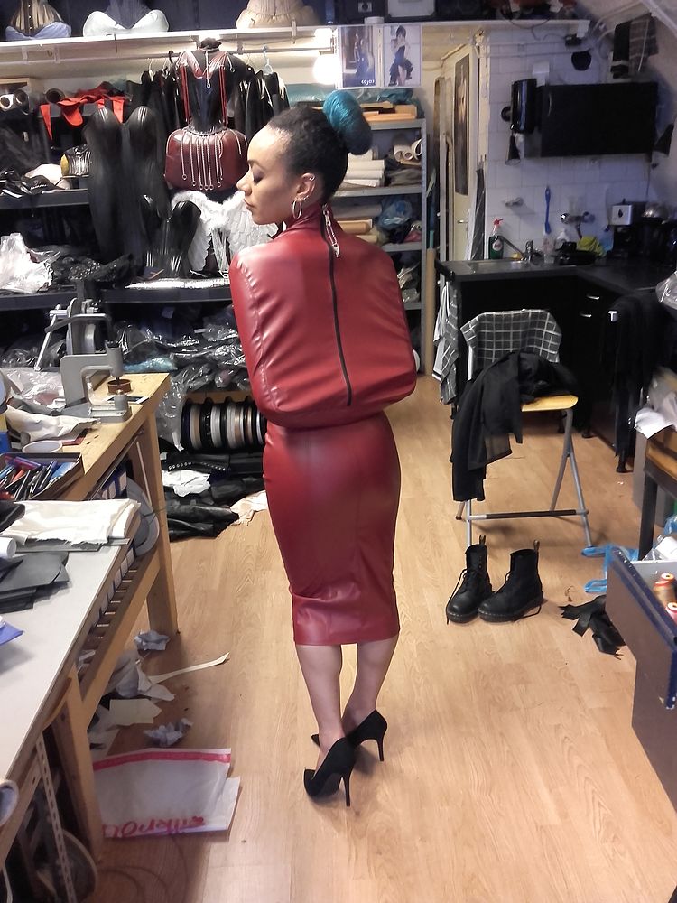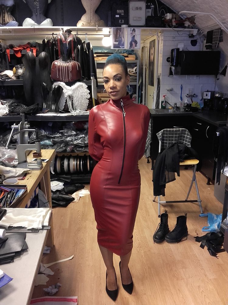 You can order this leather single-glove corset dress directly from the manufacturer: