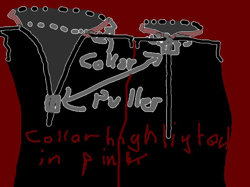 Attach the 30 cm string to the rings on the left and the right of the collar. It is possible, that 30 cm is too short, you need to experiment. I will call this string "collar string".