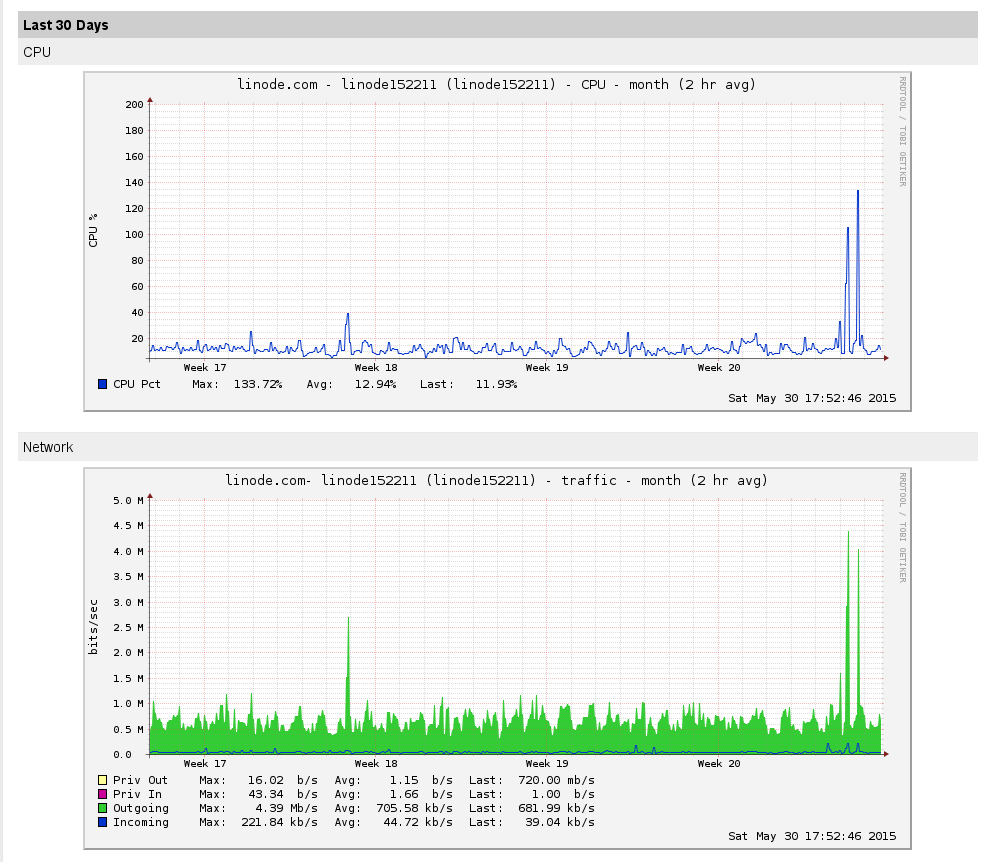 The migration from Xen (EOLed) to KVM (new default virtualization platform at Linode) did not go well last night and the virtual OS did not boot. I logged a case within Linode and currently the system is working using the rescue kernel. The reason why it did not boot up was explained by the engs (different device names), but right now I do not see any old names in the config. Either they were reset properly by the rescue kernel or there is something else... Need to investigate further, so please expect more "downs".