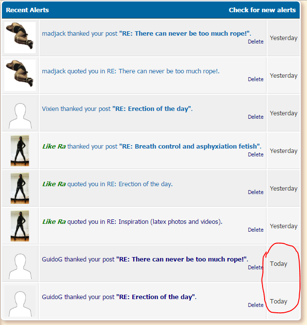 (20 Nov 2016, 02:07 )Like Ra Wrote:(19 Nov 2016, 17:18 )Like Ra Wrote:(19 Nov 2016, 06:22 )madboyevil Wrote: Maybe the best thing would be to show them from new to last in my opinion?Good idea. I will have a look at how the plugin is written, most likely it's just a matter of a simple SQL tweak. The problem still remain. Here is an example of today, 22 november, 22:13: (23 Nov 2016, 03:15 )madboyevil Wrote: The problem still remain. Here is an example of today, 22 november, 22:13:Hm... Currently the Alerts are sorted "descendantly" by the ID. PHP Code: $alerts = $this->db->write_query("SELECT a.*, u.uid, u.username, u.avatar, u.usergroup, u.displaygroup FROM " . TABLE_PREFIX . "alerts a INNER JOIN " . TABLE_PREFIX . "users u ON (a.from_id = u.uid) WHERE a.uid = " . (int) $this->mybb->user['uid'] . " AND (alert_type IN ({$alertTypes}) OR a.forced = 1) ORDER BY a.id DESC LIMIT " . (int) $start . ", " . (int) $limit . ";");