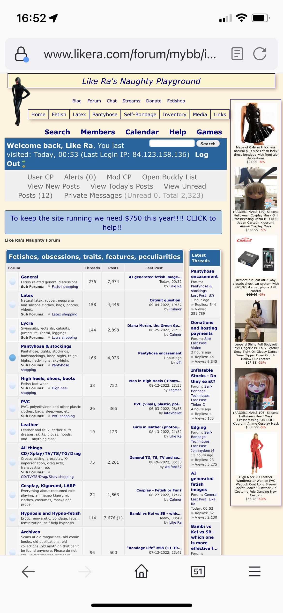 The subject is being covered over with adds of items to buy. Tinker D dateline='[url=tel:1690378134' Wrote: 1690378134[/url]'] (26 Jul 2023, 14:32 )Tinker D Wrote: Getting this on my iPhone.So, it's getting worse.... A quick workaround is to click on any forum link, for example, this one: https://www.likera.com/forum/mybb/Forum-General As I said before, I have no idea what might cause this, as the templates look very similar, so: (23 Sep 2022, 19:19 )Like Ra Wrote: ... and if anybody has any ideas how to fix that, please! (26 Jul 2023, 18:15 )Like Ra Wrote:(26 Jul 2023, 14:32 )Tinker D Wrote: Getting this on my iPhone.So, it's getting worse.... Where is it supposed to be placed? (26 Jul 2023, 19:05 )molytery Wrote: Where is it supposed to be placed?See the Android screenshot here: https://www.likera.com/forum/mybb/Thread...3#pid62483 (26 Jul 2023, 18:15 )Like Ra Wrote: A quick workaround is to click on any forum link, for example, this one: https://www.likera.com/forum/mybb/Forum-GeneralHa! It does not work anymore! Oh, my... that's ridiculous ... OK, let's clean all caches here... Rebooting the server ...