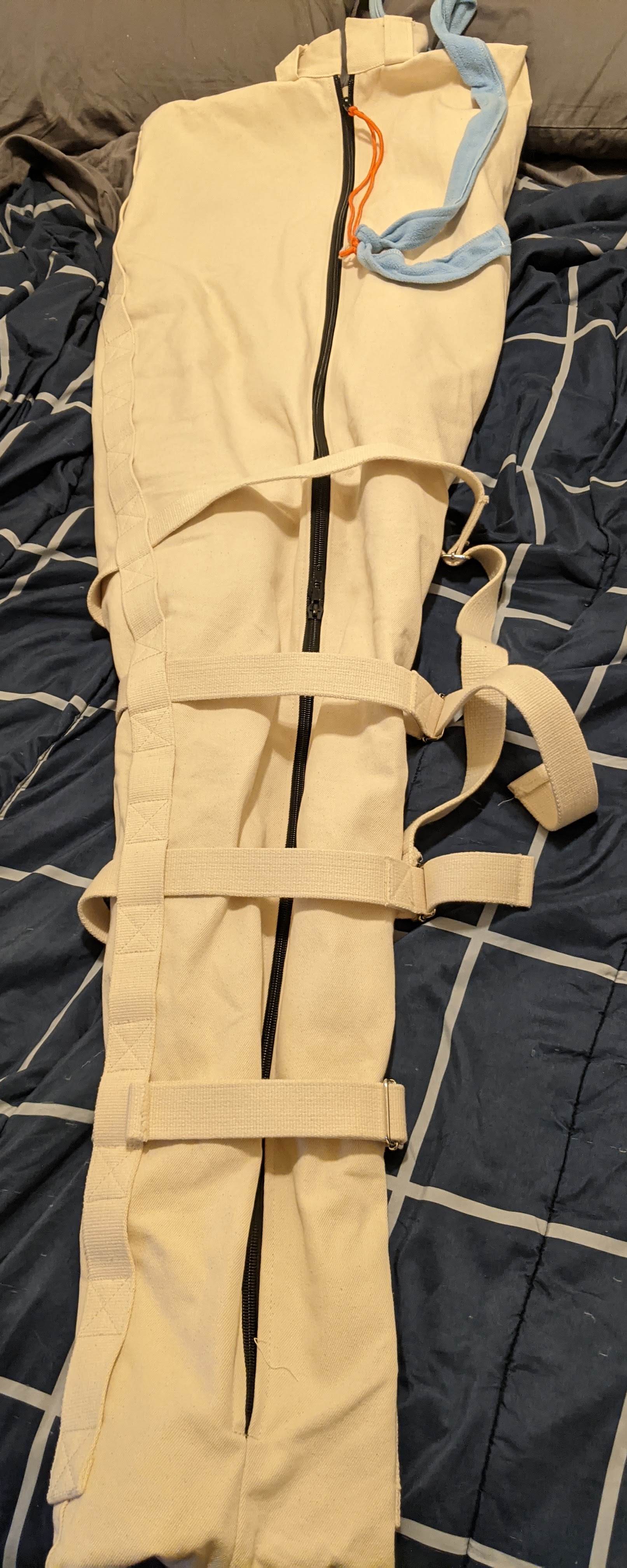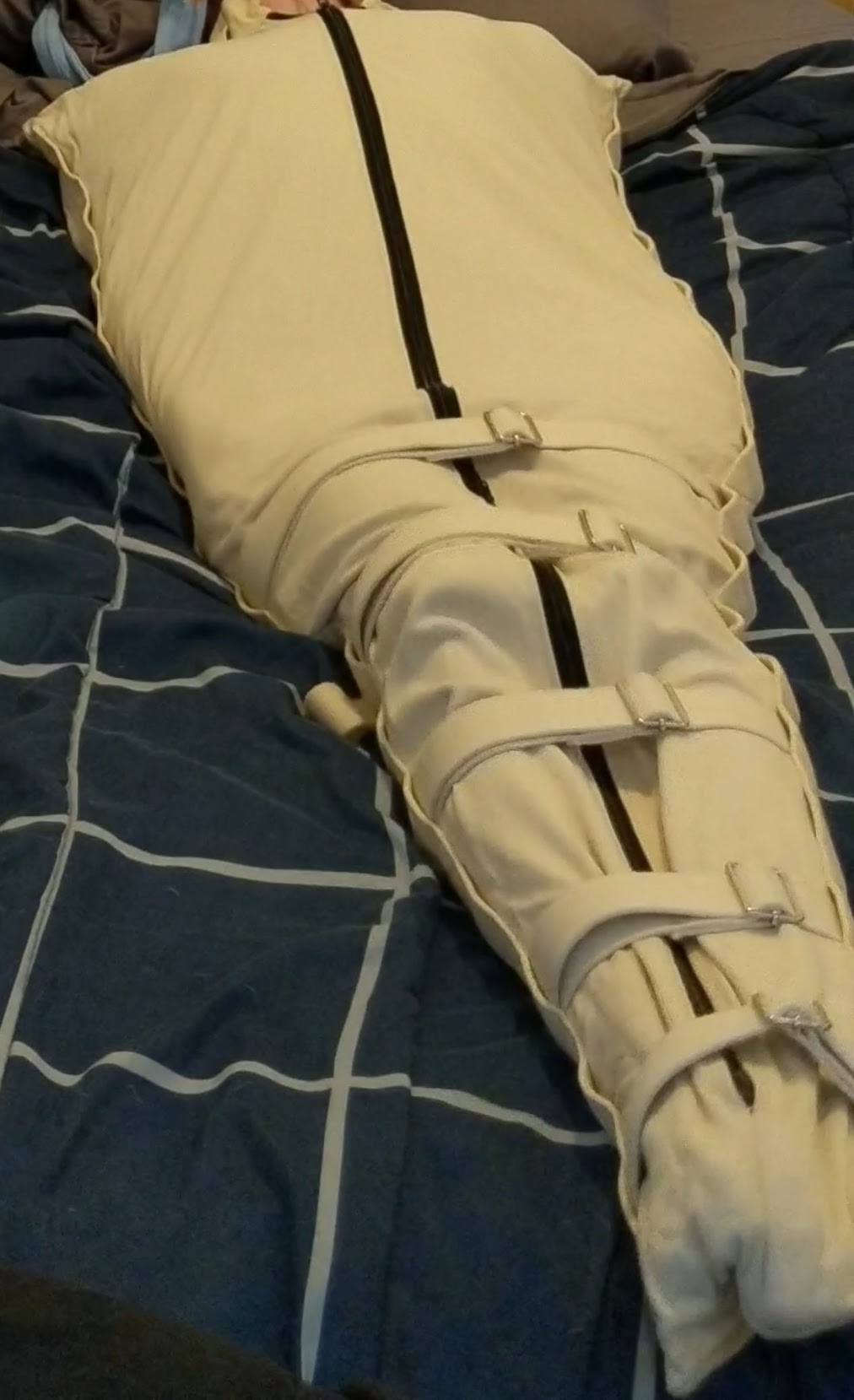 Hi all, I figured I would share my sleepsack self-bondage technique. I've used this method on a darlex sleepsack (with internal sleeves) before and now recently got a canvas sleepsack (with internal sleeves).