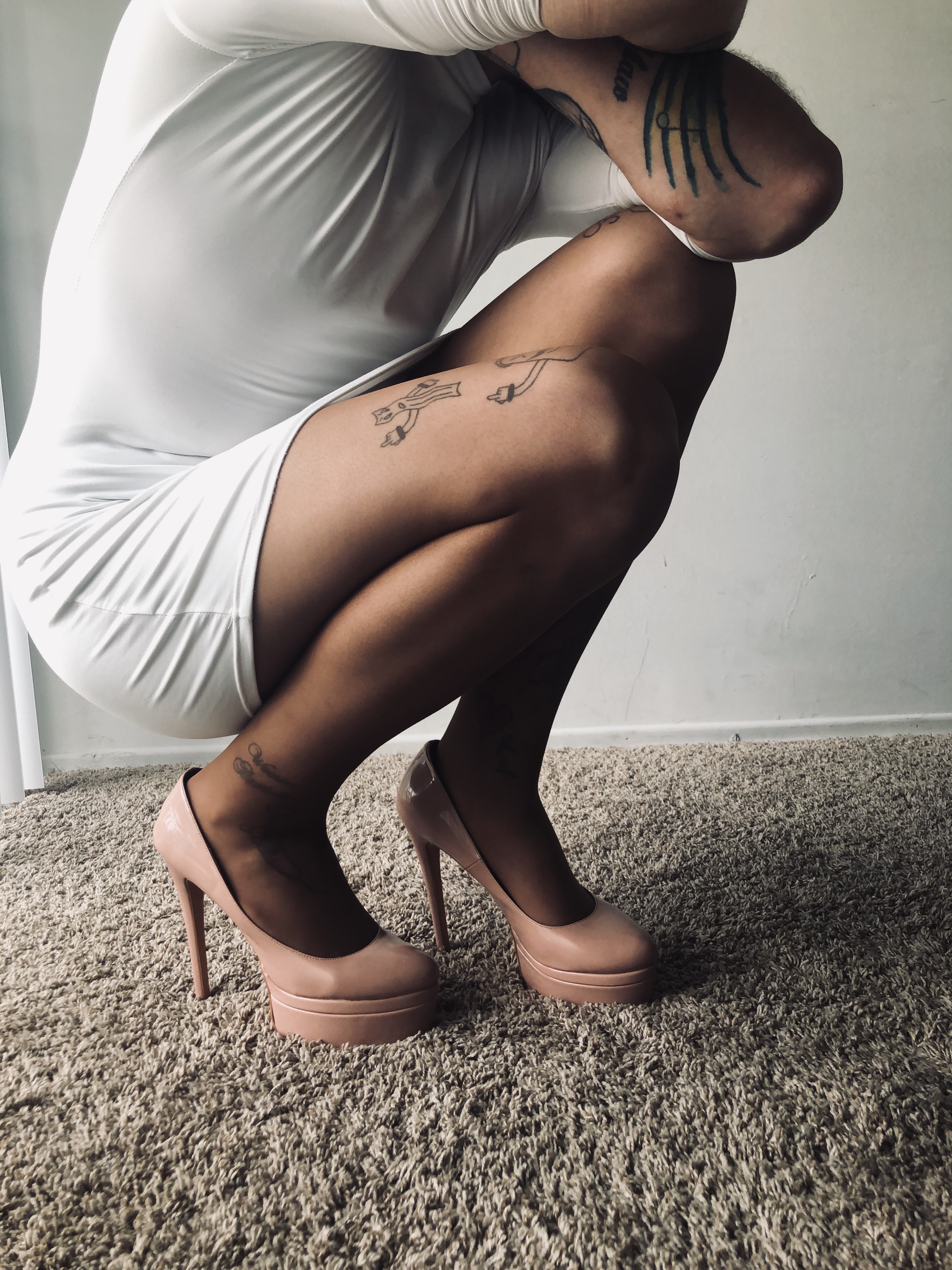 That being said, I was super proud to have found an absolutely adorable dress at my local Goodwill the other day, and luckily today was able to find Pantyhose I've not had the pleasure of ever having worn, and of course, I adored getting to slip on my 5-inch stiletto pumps again, whew! So I took some photos to celebrate the occasion. Now I'm not a photographer by any means, and my camera is not of any high caliber type, but personally I'm totally thrilled with how they came out 🤩