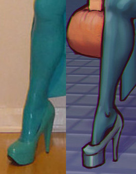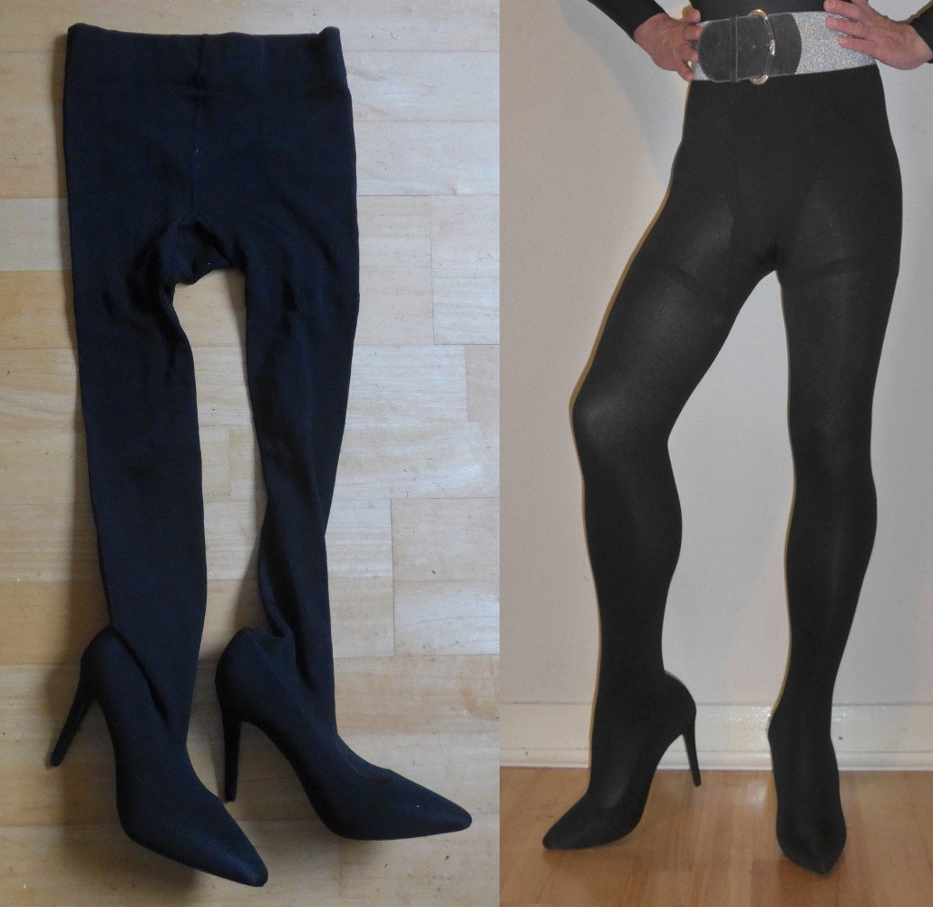 The idea is probably more fun than the actuality. On the positive side, they generally fit well (which I didn’t think they would when I un-packed them)with no wrinkles at the knee or ankle, their texture is nice (velvety and soft) and they have a subtle shine which I like.