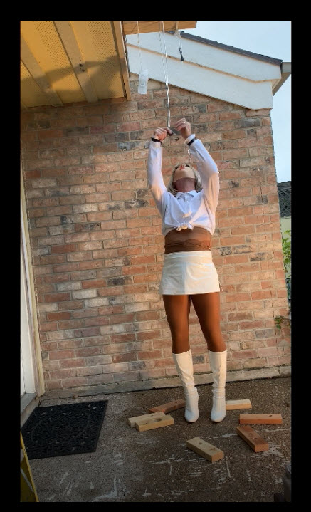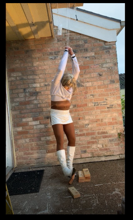 Now on to making it much harder.  Move the key higher, the first 3-4 layers are not to bad but make it 10 layers and you could end up spending an hour or two standing in stilettos working the blocks. The higher it gets the more the spike heel must be used.  Add a few tight ropes, a vibrator, and your off and running.