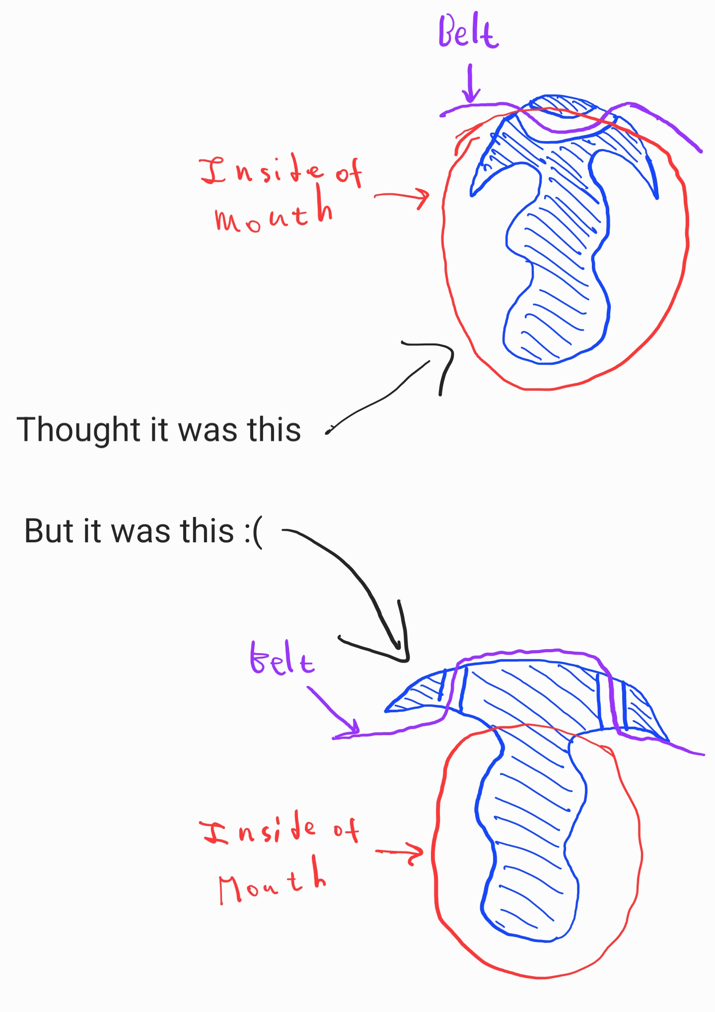 Just a little disappointing in the way the strap attaches. At first look, I thought that the strap would go through the base allowing the "wings" to go both inside or outside of cheeks, but it only allows outside placement.
